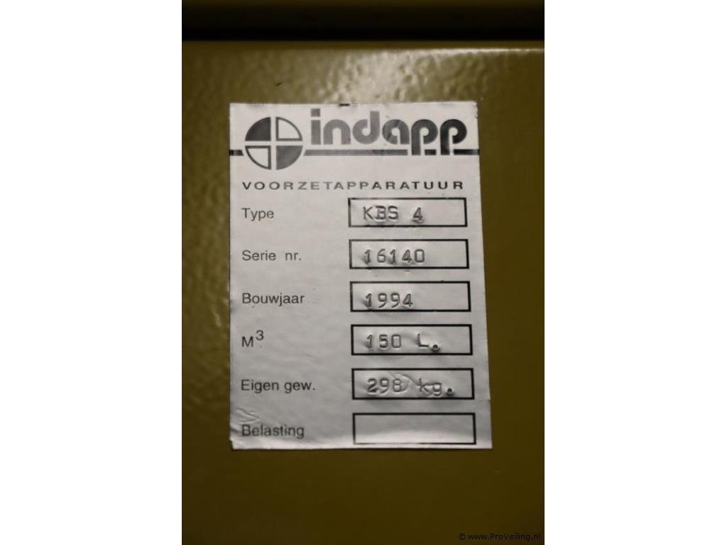 Indapp Chemicaliënkast KBS 4; bouwjaar 1994; eigen gewicht 298kg; afmetingen ca. 100x50x204cm; excl. inhoud; zie afbeeldingen.