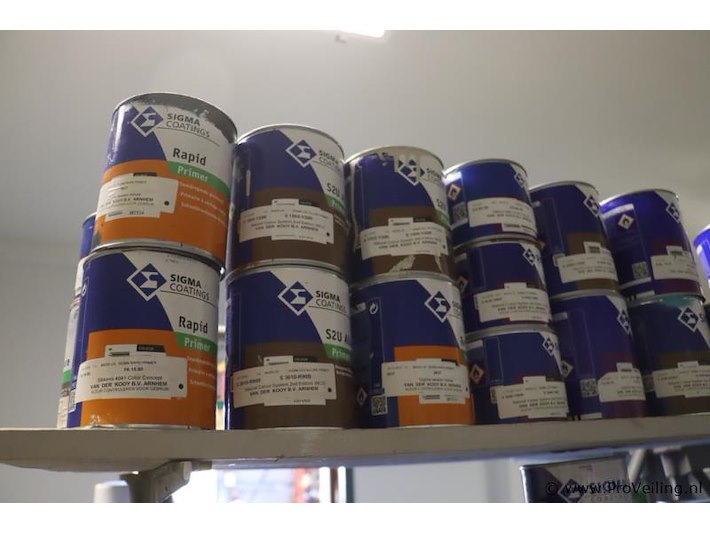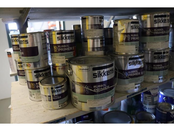 Partij verf bestaande uit o.a. sigma primer, ppg s2u grondverf allure, veveo rain guard, urethan primer 4s & sikkens rubbol primer