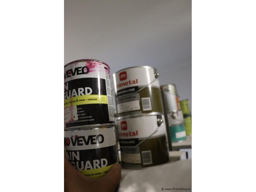 Partij verf bestaande uit o.a. Sigma Primer, PPG S2U Grondverf Allure, Veveo Rain Guard, Urethan Primer 4S & Sikkens Rubbol primer; zie afbeeldingen.