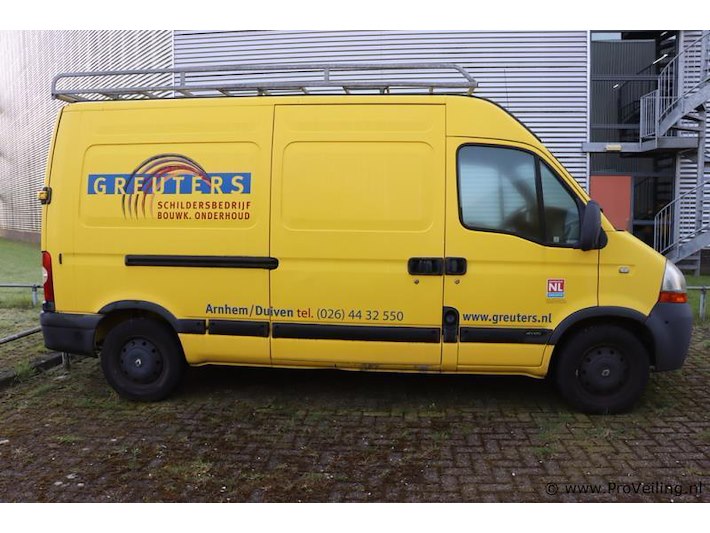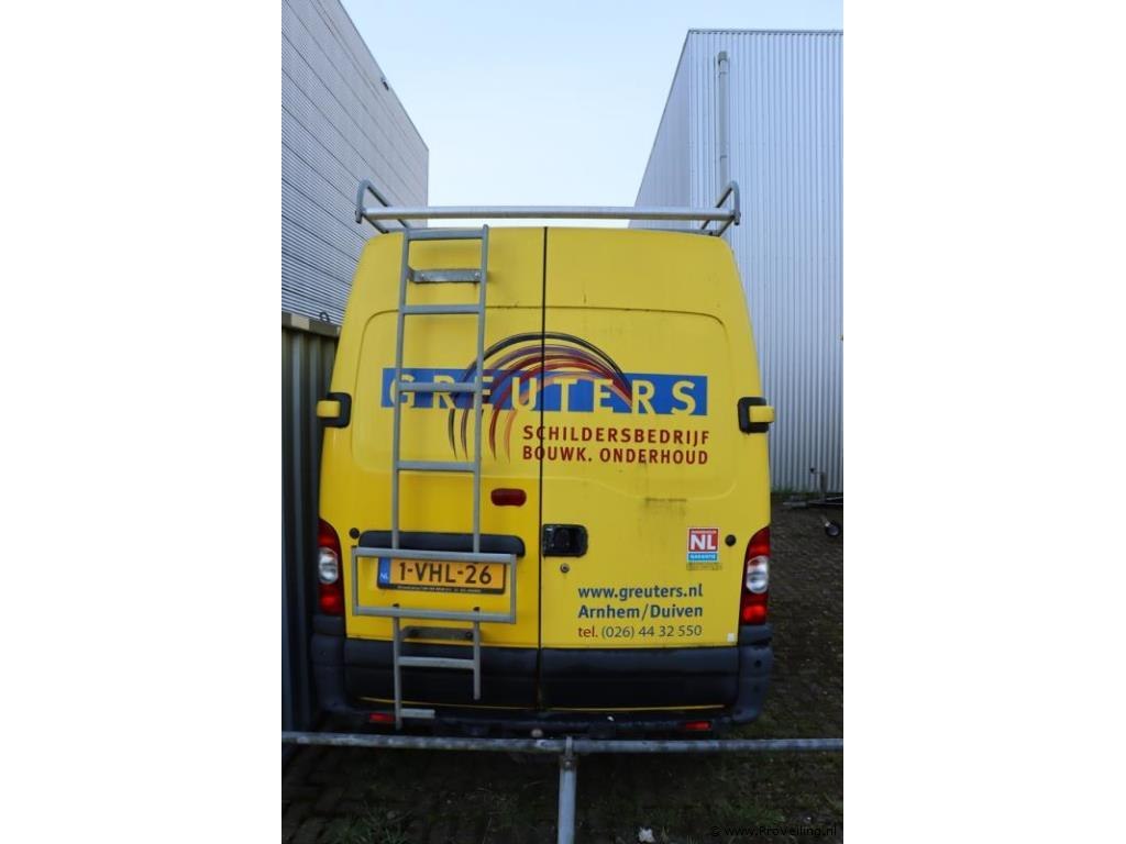 Kavelomschrijving – Renault Master dCi120 T35 L2/H2 (2010) Algemene gegevens Merk: Renault Model: Master dCi120 T35 L2/H2 2.5 dCi 88 kW E4 FAP Bouwjaar: 2010 Kilometerstand: ca. 175.093 km Brandstof: Diesel Vermogen: 88 kW Aantal cilinders: 4 Emissieklasse: Euro 4 Transmissie: Handgeschakeld (6 versnellingen) Aantal zitplaatsen: 2 Eigenaren: 1e eigenaar Massa rijklaar: 1.980 kg Toegestane max. massa voertuig: 3.500 kg Laadvermogen: 1.620 kg APK geldig tot: 9 mei 2025 Opties & accessoires Dak imperiaal Trekhaak Bedrijfswageninrichting Elektrische ramen Airconditioning Inbouw radio/CD-speler Omschrijving Deze Renault Master betreft een ruime en praktische bedrijfswagen, geschikt voor intensief professioneel gebruik. Dankzij de aanwezige inrichting, Dak imperiaal en trekhaak is het voertuig direct inzetbaar voor diverse transporten- en werktoepassingen. De wagen is voorzien van een 88 kW dieselmotor en een handgeschakelde 6-versnellingsbak, wat zorgt voor betrouwbare prestaties en efficiënte inzetbaarheid. Het voertuig kan gebruiks- en ouderdomssporen vertonen, passend bij de leeftijd en kilometerstand. Het voertuig wordt aangeboden in de huidige staat. Veilinginformatie Geïnteresseerden wordt nadrukkelijk geadviseerd gebruik te maken van het bezichtigingsmoment alvorens een bieding te plaatsen. Bezichtiging U bent van harte welkom tijdens de kijkdag om het voertuig van dichtbij te inspecteren en een goede indruk te krijgen van de algehele staat.