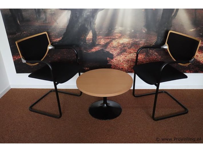 ; afmetingen tafel ca. Ø 60cm x 40cm (h); stoelen (2x) ca. 38x52x83cm; zithoogte ca. 47cm; zie afbeeldingen.
