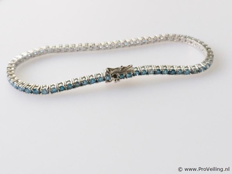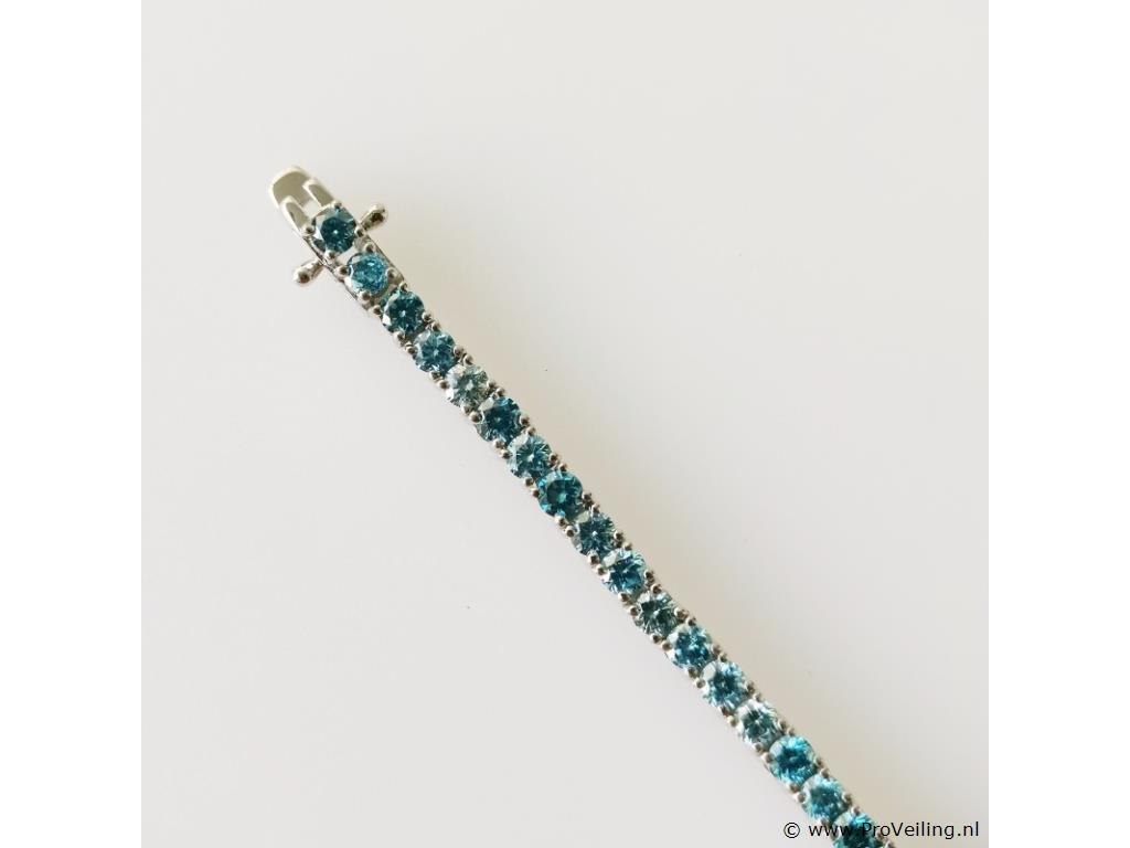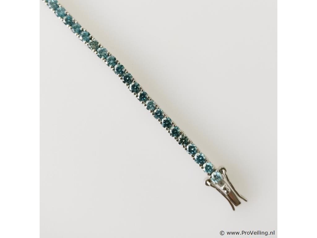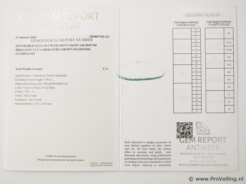 GRA Report Number 1820007103AN Metal: 925 Silver Weight: 8.24 grams Measurements: 195x3x3mm Center Stone: Lab Grown Diamond 4.80 ct Fancy to Fancy Vivid Blue VS1-I1 Shipping: Free insured shipping within the EU with track and trace Additional information: Some of the images are zoomed in. Please refer to the measurements for actual size Packaging: Comes with a jewelry box