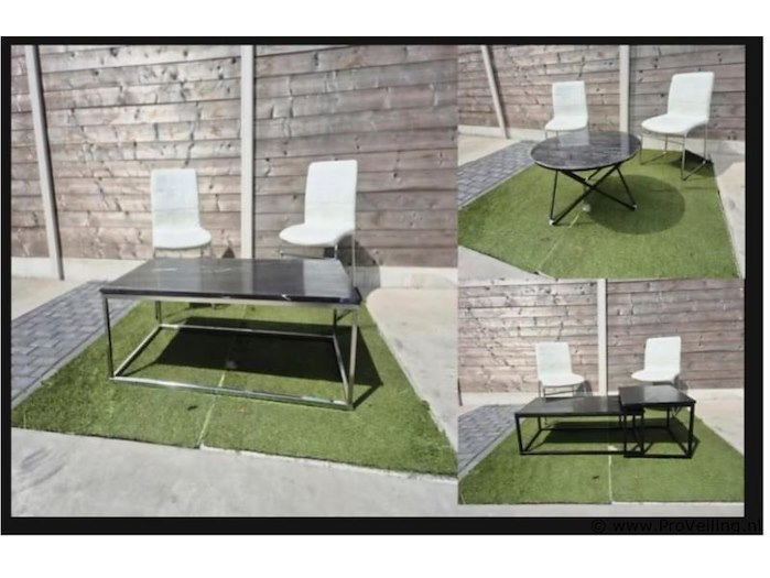 10 DOZEN Bijzet tafels Stalen FRAME met graniet werkblad Diversen modellen en Kleuren NIEUW IN DE VERPAKKING geladen op pallets