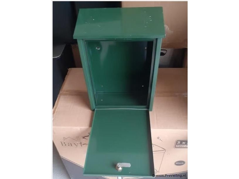 50 STUKS GROENE BRIEVENBUSSEN OP PALLET MET SLEUTEL metaal