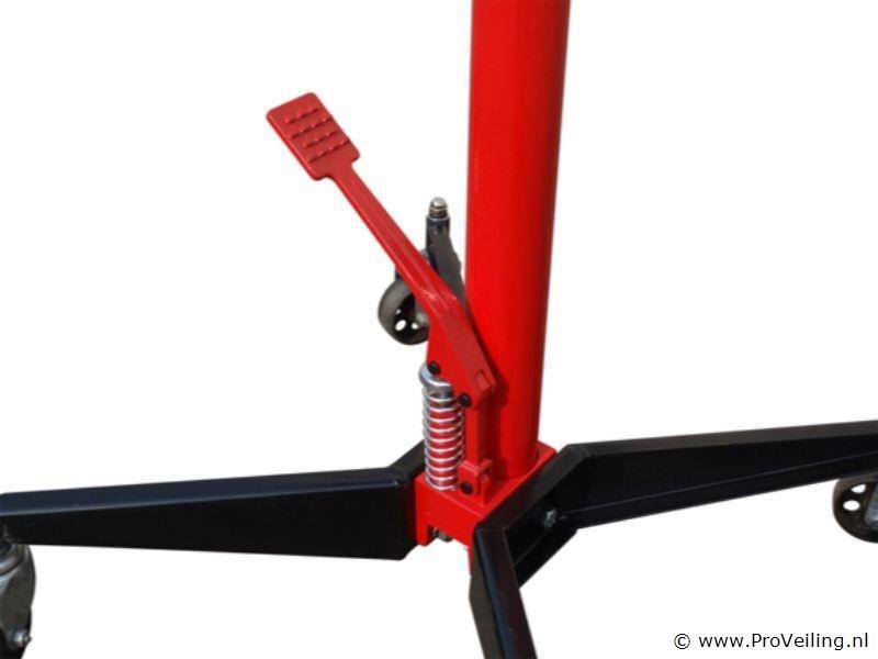 500 KG hydraulische transmissiekrik voor het heffen en neerlaten van transmissies voor versnellingsbakken, brandstoftanks of het verwisselen van lagers onder een autolift. 500 KG hydraulische hefcapaciteit. Het is geschikt voor het heffen en neerlaten van transmissies voor versnellingsbakken, brandstoftanks of het vervangen van lagers onder een autolift. Met vier (4) stalen zwenkwielen kan de transmissiekrik comfortabel onder het voertuig worden gerold en met de voetpomp op de gewenste hoogte worden gebracht. Compacte constructie, licht gewicht, snel in het heffen, stabiele beweging. Capaciteit: 500 KG Minimum hoogte: 1100 mm Maximale hoogte: 1900 mm Netto gewicht: 24 KG Bruto gewicht: 26 KG Garantie: 2 Jaar