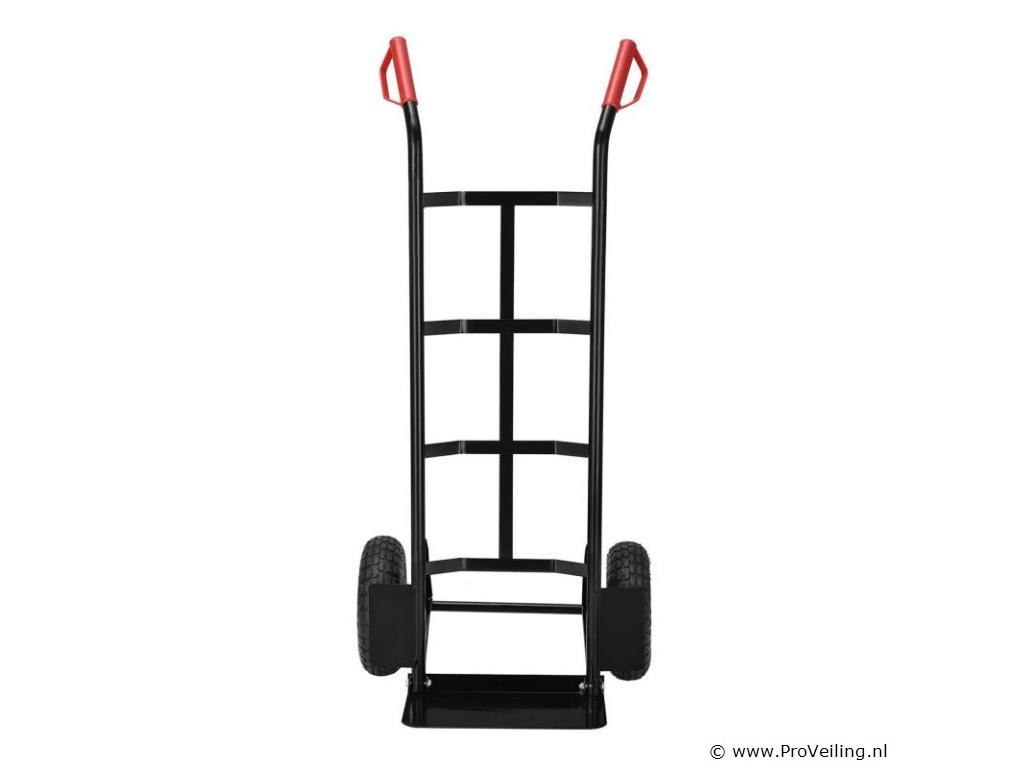 De praktische steekwagen Basic 100 kg met grote wielen en rode handvatten is de ideale hulp bij het vervoeren van zware en onhandelbare voorwerpen. Drankkratten, verhuisdozen, meubels of elektronische apparaten - met deze robuuste stalen steekwagen vervoert u alles snel en eenvoudig. De transportwagen is geschikt voor zowel binnen- als buitengebruik. Het is gemakkelijk te rangschikken. Obstakels zoals trappen of stenen worden gemakkelijk overwonnen. U bespaart veel tijd en moeite en beschermt ook uw rug. Technische specificaties: Draagvermogen: max. 100 kg Gewicht: 9kg Kleur: zwart, rood Materiaal: staal, kunststof Afmetingen (ongeveer): Hoogte: 118cm Breedte: 44cm Laadschop: 35,5 x 19 cm Leveringsomvang: 1 x steekwagen 1 x Duitstalige montagehandleiding