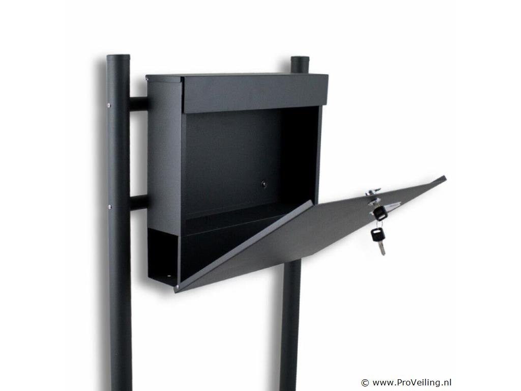 Met zijn tijdloze, elegante design past deze staande brievenbus perfect in elke woonomgeving. En dankzij het compacte ontwerp neemt de staande brievenbus weinig ruimte in beslag. De montage is snel en eenvoudig met de hand. De levering bevat 2 standaards, 2 kruisschoren, bevestigingsmateriaal en elk twee sleutels Technische specificaties: Afmeting (B/H/D) 50 cm x 120 cm x 13 cm Afmetingen brievenbus (B/H/D) 37 cm x 36,5 cm x 10,5 cm Afmeting krantenvak (B/H/D) 36 cm x 9 cm x 8 cm Afmetingen sleuf (B/D) 33cm x 3,5cm Standhoogte 1.20 m Standaard doorsnee 4 cm Materiaal: metaal, gepoedercoat Gewicht 5,25 kg Kleur: donkergrijs Leveringsomvang: 1x brievenbus 2x standaard 2x kruisschoren 2x sleutels bevestigingsmateriaal