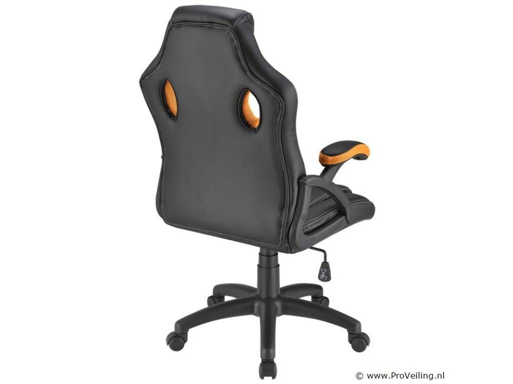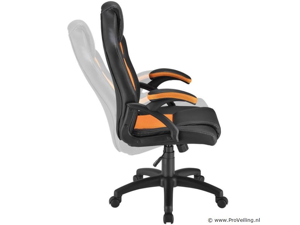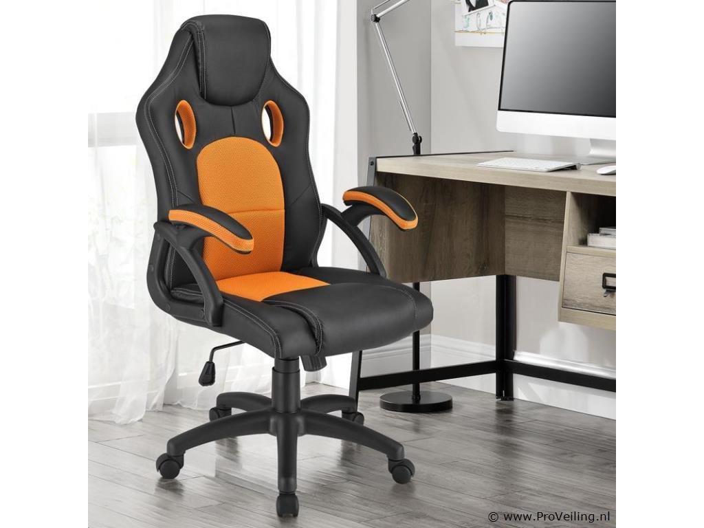 De knusse racebureaustoel Montreal (oranje) overtuigt met een hoog zitcomfort. Met zijn ergonomisch gevormde zitting, de kantelbare rugleuning en zitting en de gecapitonneerde armleuningen laat de moderne bureaustoel in trendy racer design urenlang comfortabel zitten. De draaistoel is daarom ideaal om thuis op kantoor te werken, huiswerk te maken en te leren, en voor gepassioneerde gamers om op de computer te spelen. Technische specificaties: Materiaal: kunststof, metaal, imitatieleer, mesh inzetstuk Kunstleer kleur: Zwart Netkleur: oranje Maximale belasting: 120 kg Afmetingen (ongeveer): Totale hoogte: 101 - 111 cm Hoogte rugleuning: 65 × 66 cm Zitting: 47 x 52 cm Zithoogte: 46 - 56 cm Zitbreedte: 47 cm Zitdiepte: 52 cm Leveringsomvang: 1 × bureaustoel 1 × montage-instructies