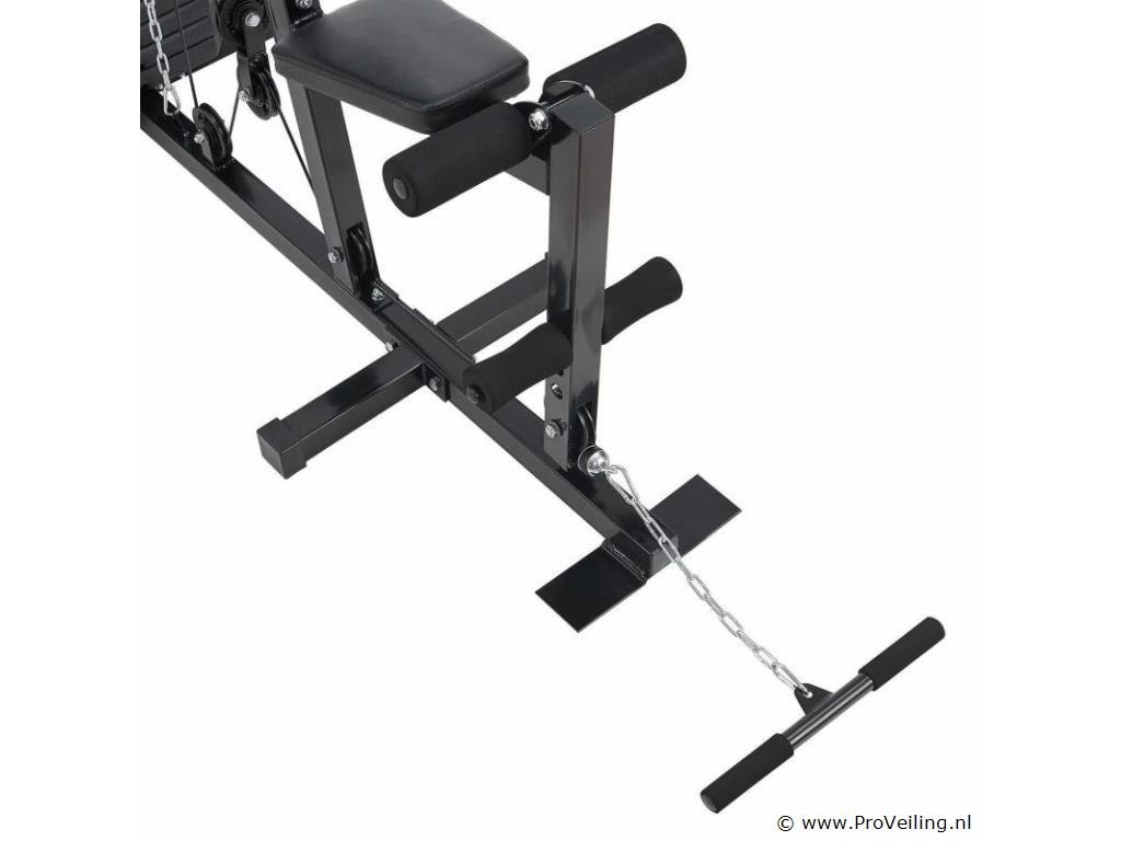 Uw persoonlijke fitnessstudio voor thuis: het ArtSport krachtstation ProfiGym 2000. Met dit krachtstation traint u effectief uw hele lichaam - ideaal voor uw intensieve thuistraining. De doordachte hometrainer is extreem ruimtebesparend en combineert meerdere sporttoestellen in één. Vervolg uw trainingsplan binnen uw eigen vier muren: bevorder spierdefinitie door gevarieerde fitnessoefeningen voor het boven- en onderlichaam. Pas de intensiteit eenvoudig aan naarmate je vordert met behulp van de halterschijven. Het trainingsstation is daarom ideaal voor dames en heren. Technische specificaties: Materiaal krachtstation: staal Materiaal zit- en rugkussens: PE-schuim, PVC-leer De kleur zwart Plaatgewicht: 8 × 4,5 kg Gewicht bovenplaat: 1 × 4,3 kg Totaal halterschijven: 40,3 kg Afmetingen (ongeveer): Totale afmetingen: 135 × 103 × 201 cm Leveringsomvang: 1 x krachtstation van ArtSport 1 x vlinderstang 1 x lat pulldown stang 1 x biceps katrol 9 x halterschijven 1 × Instructie