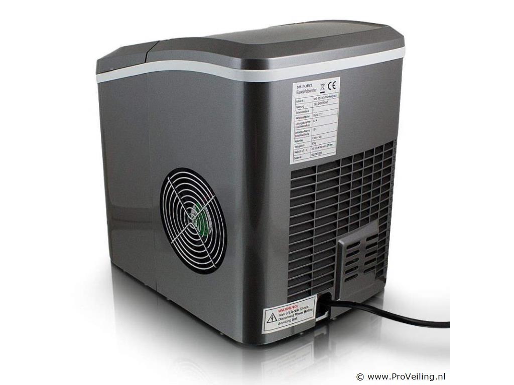Inrichting: gekoelde opslagbak voor ijsblokjes ca. 6-13 minuten voor een lading ijsblokjes IJs dagelijkse output 10-12kg 2 selecteerbare ijsblokjesmaten Hoogwaardig compressorgeluidsniveau (30db) GS getest Technische specificaties: Afmetingen: 350 mm x 250 mm x 325 mm (L/B/H) Watertank: 2,2 liter Gewicht: 7,85 kg Kleur: donkergrijs Capaciteit: 0,8 kg ijs Dagelijkse productie: 10 - 12 kg ijs Vermogen: 220-240 volt 50Hz/120 watt Leveringsomvang: 1x ijsblokjesmachine 1x ijsblokjesschep 1x gebruiksaanwijzing