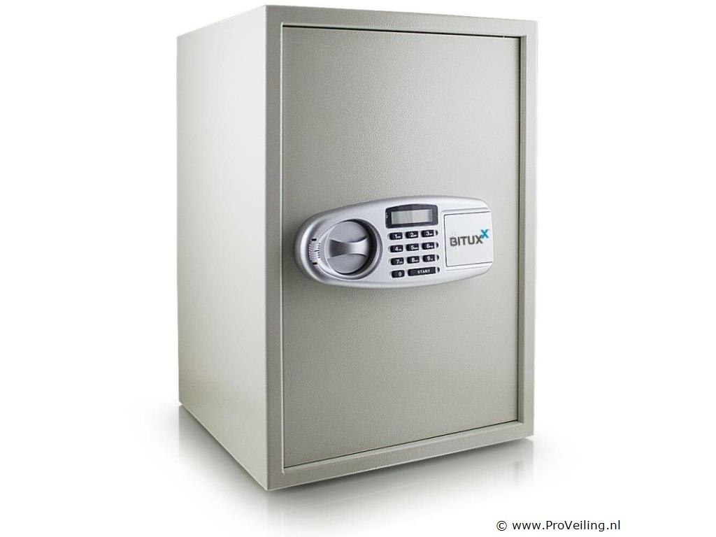 Het is ideaal voor het opbergen van dossiers, kostbaarheden of belangrijke documenten. Kies tussen veilige wand- of kastmontage. De plank is uitneembaar en in hoogte verstelbaar. De kluis kan alleen worden geopend door het invoeren van uw persoonlijke pincode of met de meegeleverde beveiligingssleutel. De deur met dubbel grendelslot beveiligt de kluis tegen onbevoegd openen. Veilige opslag, elektronische kluis voor wand- of kastmontage. Inrichting: Programmeerbare elektr. combinatieslot dubbele boutvergrendeling Uitneembaar en in hoogte verstelbaar inlegvel Wand- en kastmontage Technische data: Buitenafmetingen 35 x 52 x 36 cm Binnenmaat 34,5 x 51,5 30 cm Stalen wanddikte 2 mm Stalen deurdikte 4 mm Gewicht 20kg Kleur lichtgrijs Leveringsomvang: 1x kluis met elektr. combinatieslot 2x beveiligingssleutels 2x bevestigingsbouten 1x gebruiksaanwijzing