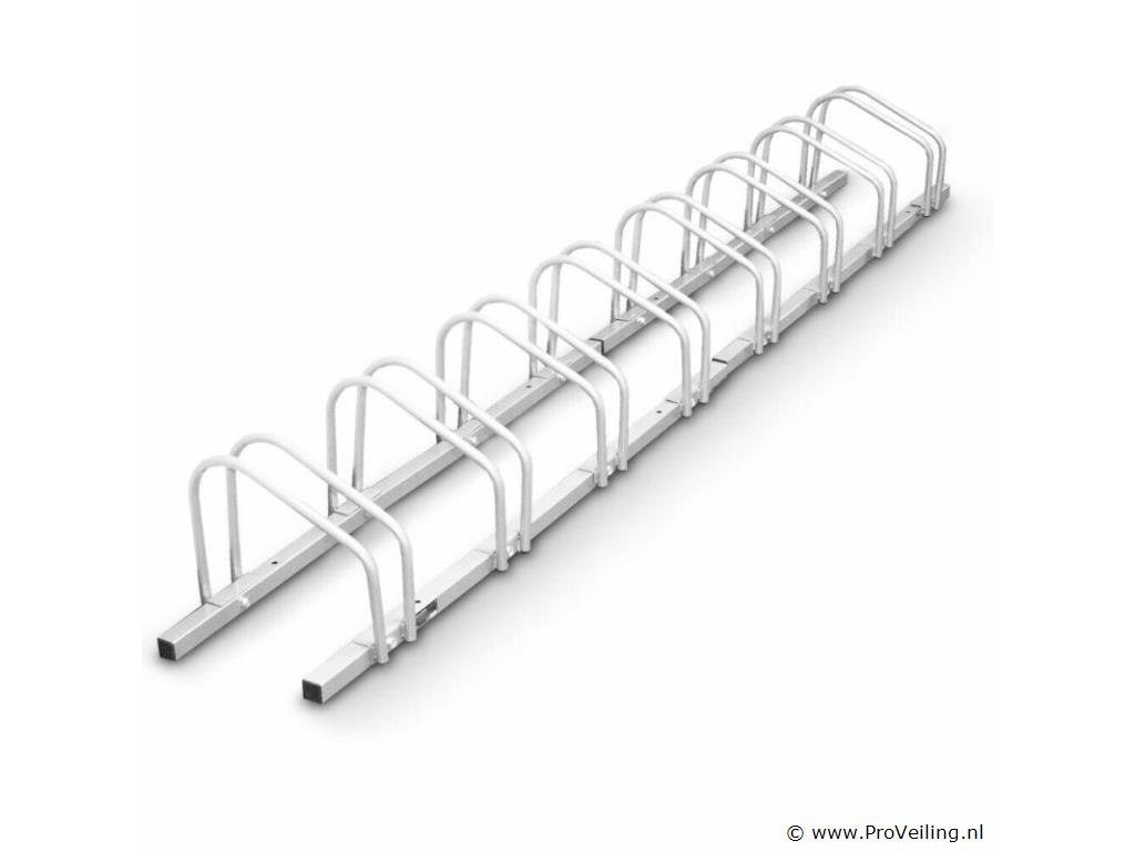 Set van 8 (2x4) fietsenrekken De praktische fietsendragers van Bituxx zijn ideaal om fietsen ruimtebesparend te stallen. Je monteert de fietsstandaard aan de muur of vloer dankzij de voorgeboorde gaten en het meegeleverde bevestigingsmateriaal. De fietsenstandaard is geschikt voor zowel binnen als buiten! Voor alle gangbare fietsen tot een bandbreedte van 60 mm. Als je de fietsstandaard uitbreidt met een andere, blijven de afstanden tussen de beugels gelijk dankzij de speciale constructie TECHNISCHE SPECIFICATIES Voor bandbreedtes: 35-60 mm Afstand van wiel tot wiel: ca. 30 cm Buisdiameter: 15 mm Materiaal: metaal Afmetingen (L/B/H): 242 x 33 x 28 cm Gewicht: 11,20 kg LEVERINGSOMVANG ? 2x 4 fietsenrekken ? 1x bevestigingsmateriaal