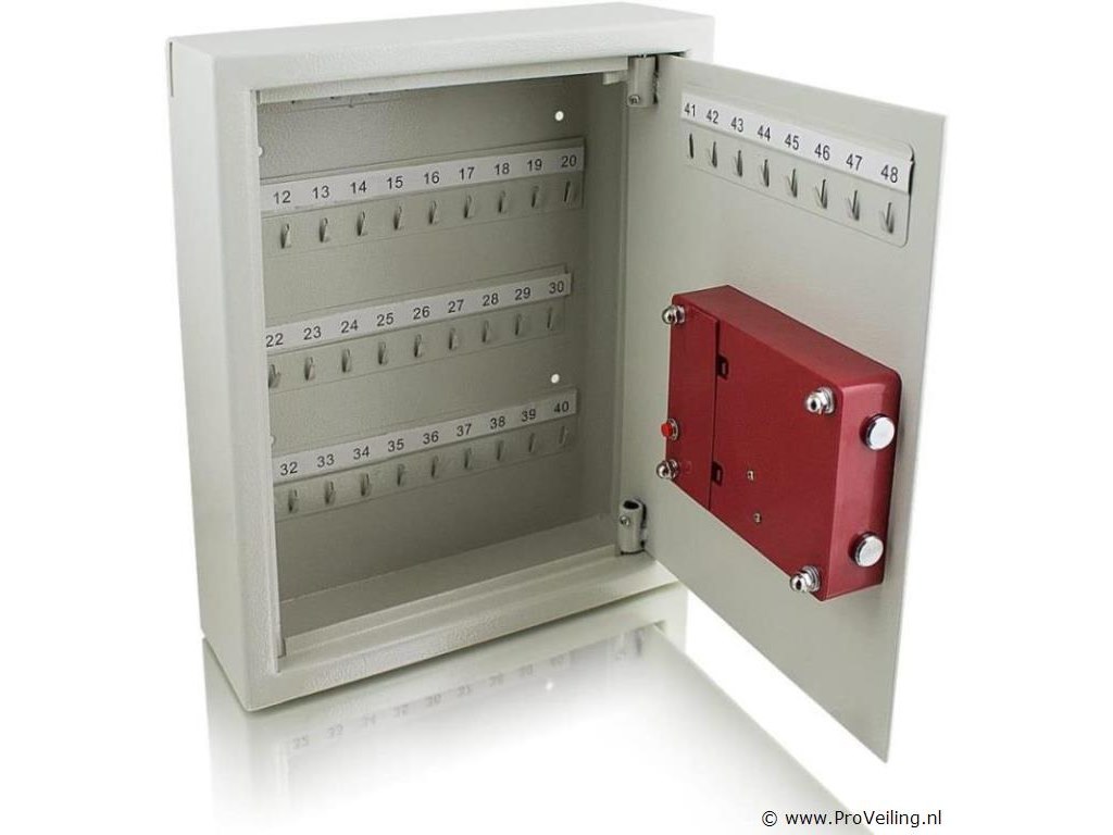 De sleutelkluis is ideaal voor het opbergen van belangrijke sleutels. Kies tussen veilige wand- of kastmontage. De sleutelkluis kan alleen worden geopend door het invoeren van uw persoonlijke pincode of met de meegeleverde veiligheidssleutel. Inrichting: Sleutelkluis voor wand- of kastmontage 48 sleutelhaken Gleuf voor sleutels elektronisch cijferslot Deur met dubbele grendelvergrendeling Inclusief 2 sleutels Technische specificaties: Afmetingen: 300 mm x 365 mm x 100 mm (B/H/D) Interne afmetingen: 295 mm x 360 mm x 80 mm (B/H/D) Stalen wanddikte: 2 mm Stalen deurdikte: 3 mm Slotbehuizing: polypropyleen Bout: staal, ø15mm Kleur: lichtgrijs Gewicht: 6,8 kg Leveringsomvang: 1x sleutelkluis incl. elektronisch cijferslot 2x beveiligingssleutels 2x bevestigingsbouten 1x gebruiksaanwijzing
