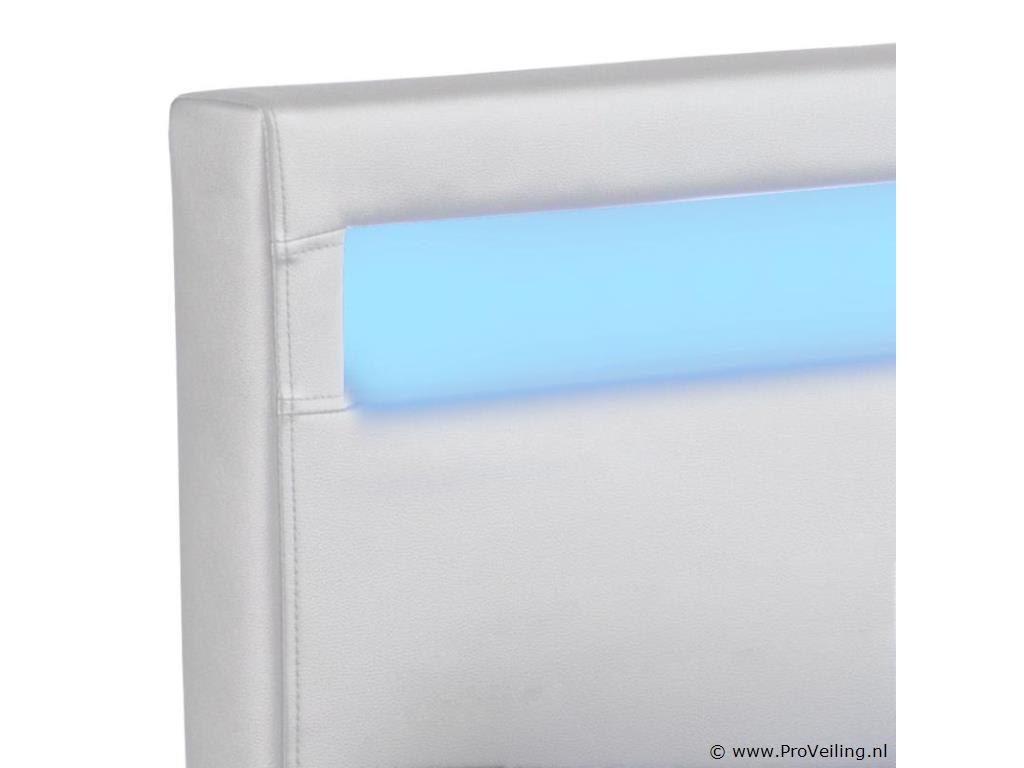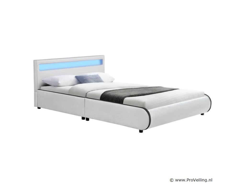 Slaapcomfort is... wakker worden en ontdekken dat het geen droom was. Want het gestoffeerde bed Sevilla (140x200 cm, wit) is echt heerlijk comfortabel en robuust tegelijk. De stabiele lattenbodem biedt de ideale basis voor een gezonde en rustgevende slaap. Dankzij de gecapitonneerde rugleuning kun je ook heerlijk ontspannen tijdens het lezen of tv kijken. Ook biedt het ruimte voor chique led-verlichting die je slaapkamer baadt in sfeervolle kleuren. De moderne uitrusting en het stijlvolle design overtuigen zowel jongeren als volwassenen. Door zijn middelgrote formaat past hij ook perfect als tweepersoonsbed in kleine slaapkamers of logeerkamers. Technische specificaties: Producttype: bedframe Kleur wit Stijl: Modern Materiaal frame: MDF hout, metaal Materiaal bekleding: kunstleer (84% PVC, 16% polyester) Verlichting: LED-strip met afstandsbediening Lichtkleur: 16 verschillende kleuren Vermogen: 14.3W Lichtstroom: 234 lm Kleurtemperatuur: 2000 - 10000K Afmetingen (ongeveer): Afmetingen: 149,5 × 217 cm Ligoppervlak: 140 × 200 cm Hoogte hoofdbord: 74 cm Dikte hoofdbord: 7,5 cm LED-balk: 9 x 140,5 cm Hoogte zijpanelen: 31,5 cm Framedikte zijkanten: 4 cm Hoogte voeteneinde: 27,5 cm Framedikte voeteneinde: 8,5 cm Voeten: 4 cm Opmerkingen over de lichtbron: Het product bevat LED-verlichting. De meegeleverde LED-verlichting is alleen bedoeld voor scène-/accentverlichting en is niet geschikt voor andere toepassingen. De meegeleverde lampen zijn niet verwisselbaar, maar verwijderbaar. De meegeleverde led-verlichting is via IR-afstandsbediening in te stellen en te dimmen. De meegeleverde LED-verlichting moet worden verwijderd voor verwijdering volgens de richtlijn voor afgedankte elektrische en elektronische apparatuur en ElektroG en afzonderlijk worden afgevoerd. Leveringsomvang: 1 x gestoffeerd bed 1 x lattenbodem 1 x afstandsbediening 1 x instructie Let op: Het matras is niet inbegrepen. U ontvangt het product goed verpakt als bouwpakket voor zelfmontage per pakketdienst. Dit artikel bestaat uit 2 dozen, het kan logistiek voorkomen dat het in meerdere dagen geleverd wordt. Onderdelen kunnen zich in het hoofdbord bevinden.