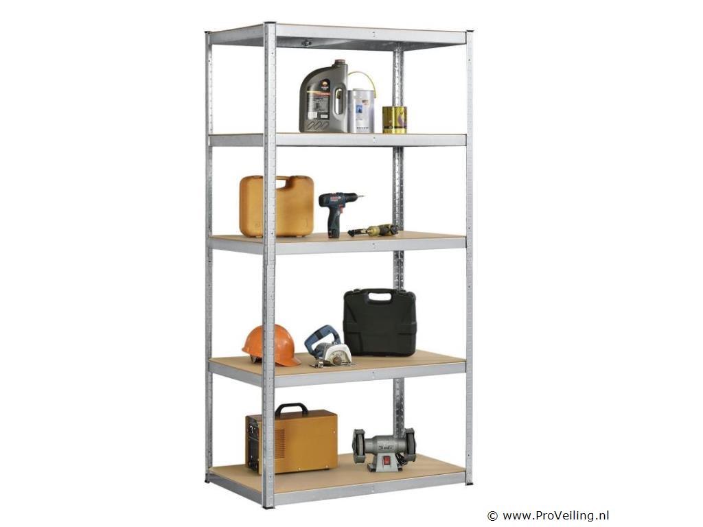 Het praktische opbergrek Basic 200 x 100 x 60 cm (zilver) is de perfecte aanvulling voor kelder, garage, werkplaats, berging en andere woonruimtes. De heavy-duty plank is gemaakt van gegalvaniseerd metaal. Met in totaal 5 planken biedt het stabiele insteekrek veel ruimte voor het overzichtelijk en overzichtelijk opbergen van gereedschap, tuinaccessoires, benodigdheden en andere spullen. Kunststof voetjes beschermen je vloer tegen lelijke krassen. Technische specificaties: Materiaal frame: metaal, verzinkt Materiaal planken: 100% hout (MDF) Materiaal voetjes: kunststof zilver Aantal planken zwaar rek: 5 Maximaal draagvermogen per plank: 175 kg Maximaal draagvermogen van heavy-duty legborden: 875 kg Aantal kruisschoren: 5 Aantal voeten: 8 Afmetingen (ongeveer): Hoogte: 200 cm Breedte: 100cm Diepte: 60cm MDF-plaat: 4 mm Leveringsomvang: 1 × opbergrek 5 × plank 1 × montage-instructies
