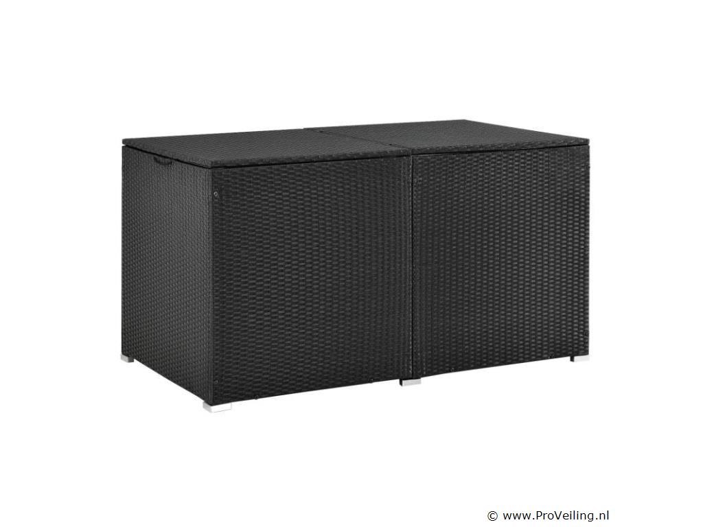 De polyrotan tuinmeubelbox Ikaria (950 L inhoud, zwart) biedt de perfecte opbergruimte voor je tuinspullen. Berg kussens, kussens of kinderspeelgoed netjes op in de tuinbox. Daar zijn de uitgaven optimaal beschermd. Het binnenzeil zorgt voor extra bescherming en het deksel houdt de box gesloten. Een automatisch hefmechanisme op het deksel maakt veilig sluiten mogelijk. De opbergbox is een echte eye-catcher. Of het nu buiten op het terras, het balkon, in de tuin of binnen in de serre is. De kast van polyrotan overtuigt door zijn moderne en stabiele stijl. Technische specificaties: Materiaal opbergdoos: polyrotan, staal Materiaal binnenzeil: polyester Kleur opbergdoos: zwart Kleur binnenzeil: wit Inhoud: 950 liter Vorm: Rechthoekig Deksel: versterkt, automatisch optillen Plaats van gebruik: binnen & buiten Poten: hoekvoet (4x), zijpoot (2x) Afmetingen (ongeveer): Lengte: 145cm Breedte: 82,5 cm Hoogte: 79,5 cm Leveringsomvang: 1 x paddoos 1 x binnenzeil 1 x Instructie Je ontvangt het product goed verpakt als bouwpakket voor zelfmontage per pakketdienst. De padbox is niet waterdicht. Plaats de box alleen op een weerbestendige of droge plaats.