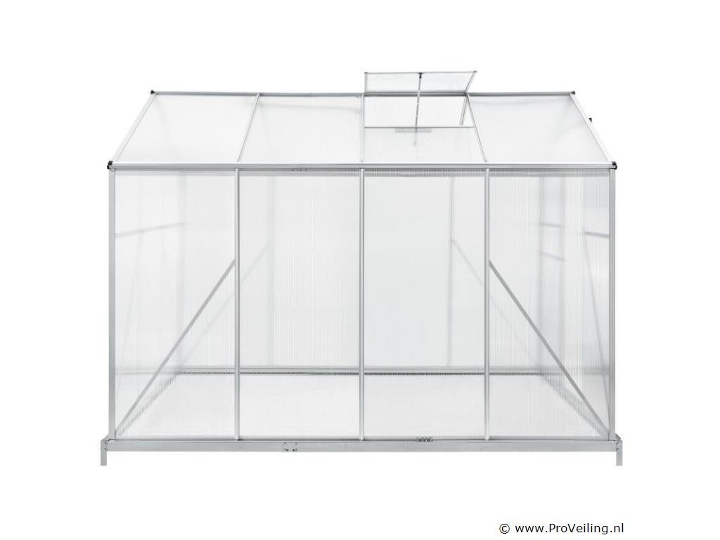 Heb je altijd al je eigen groente- of kruidenbed in je tuin willen creëren voor het kweken van tomaten, komkommers, kruiden of bloemen? Dan is deze aluminium serre met fundering en lichtkoepel de juiste keuze! De kas van 190 × 253 cm is te gebruiken als koelkas, tomatenhuis, plantenhuis of tuinhuisje. Met een vloeroppervlak van 4,75 m² biedt hij ook voldoende ruimte voor het kweken van groenten en fruit en voor het overwinteren van planten. Ideaal voor gepassioneerde hobbytuiniers. Technische specificaties: Materiaal broeikas: aluminium, polycarbonaat Materiaal fundering: staal, verzinkt Kleur lijst: zilver Kleur dubbelwandige platen: transparant Dikte van hollekamerbaanplaten: 4 mm Vloeroppervlakte: 4,75 m² Deur: 1 schuifdeur Ramen: 1 dakraam Kas: gegevensblad om te downloaden Afmetingen (ongeveer): Voetafdruk: 190 × 253 Paginahoogte: 149 Nokhoogte: 195 Voetenfundament: 7 Afmeting deur: 62 × 164 Afmeting raam: 51 x 59 Leveringsomvang: 1 × broeikas 1 × montage-instructies