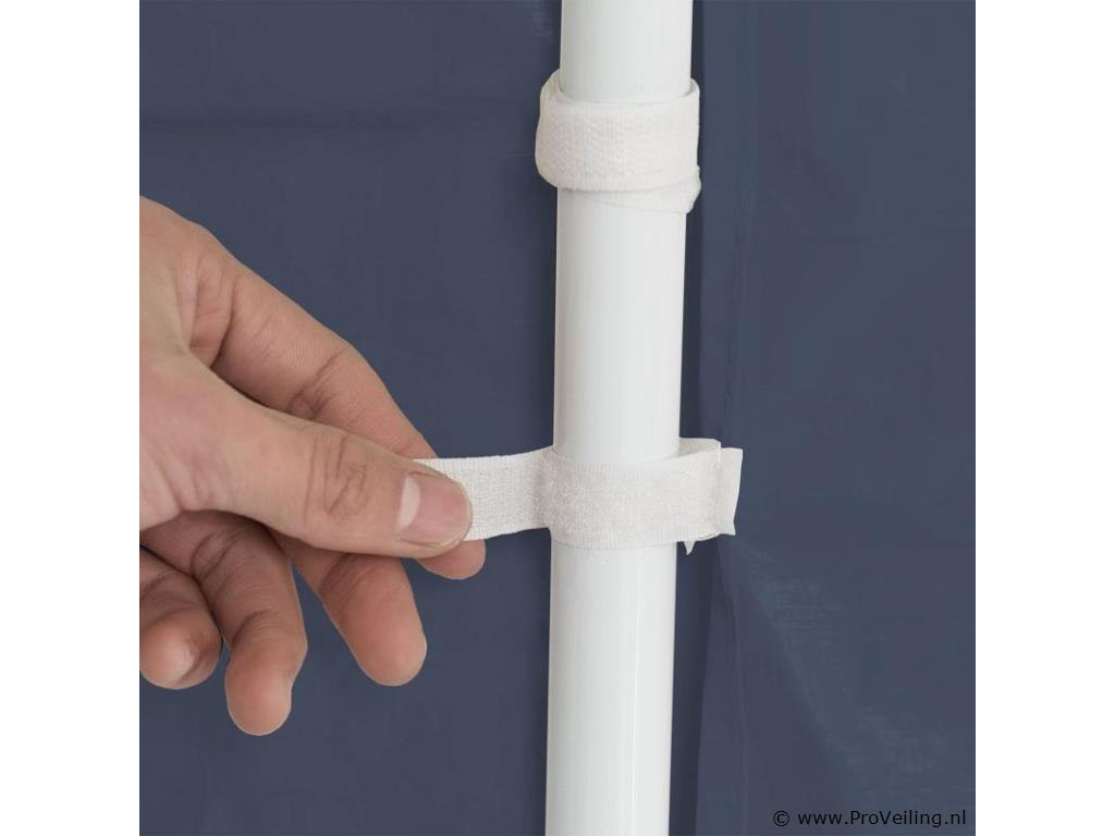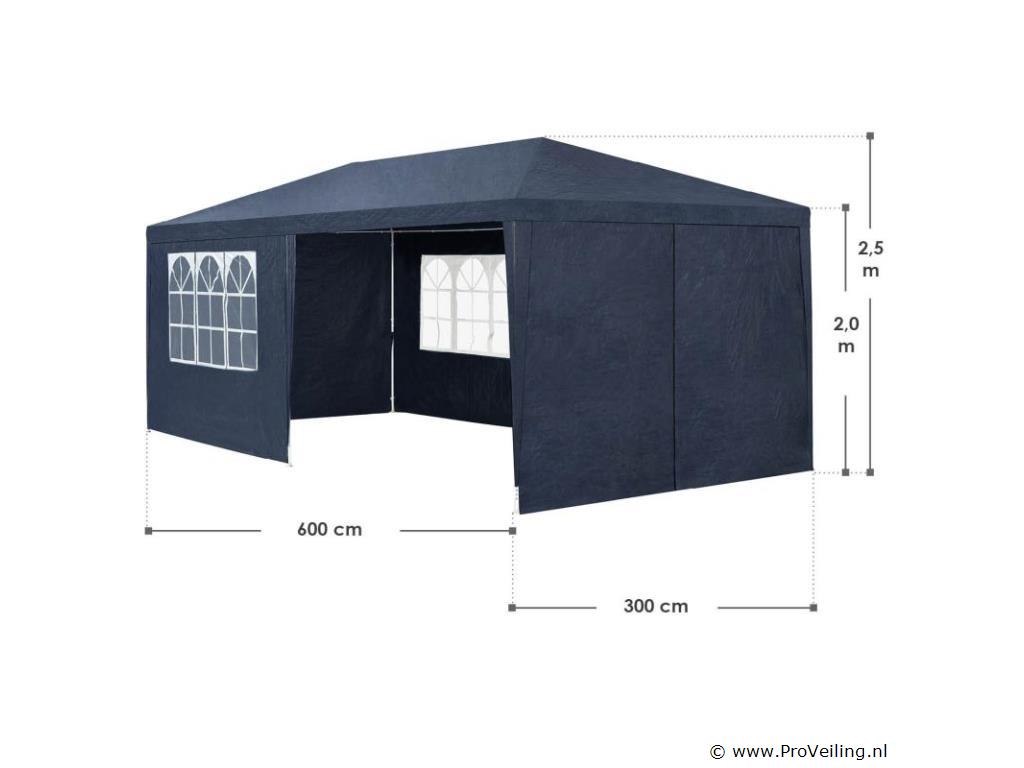 De partytent van 3 x 6 m (blauw) is de perfecte zonwering voor allerlei buitenevenementen Of het nu gaat om een ??barbecue, een verjaardag of een bruiloft - het praktische paviljoen nodigt uit om samen te zitten en feest te vieren met familie en vrienden. Onder de feesttent zijn u en uw gasten goed beschermd tegen de brandende zon. 's Avonds dienen de uitneembare zijpanelen als extra bescherming tegen koele tocht en muggen. Optimale voorwaarden om speciale gelegenheden uitgebreid te vieren in eigen tuin of op het terras. Technische specificaties: Materiaal frame: staal, gepoedercoat (100%) Materiaal dak: 100 g/m² polyethyleen (100%) Materiaal zijdelen: 90 g/m² polyethyleen (100%) Kleur tuintent: blauw Zijwand met raam: 4 Zijpaneel met ritssluiting: 2 Aantal voeten: 6 Aantal bevestigingstouwen: 6 Aantal grondpennen: 12 Afmetingen (ongeveer): Breedte: 300cm Diepte: 600 cm Hoogte: 250cm Paaldak: Ø 1,8 cm Plaatbodem: Ø 2,4 cm Leveringsomvang: 1 × feesttent 1 × montage-instructies tips: LET OP: Het tuinpaviljoen biedt onvoldoende bescherming bij storm of slecht weer. Niet gebruiken tijdens onweer, sterke windstoten, zware regenval of hagel. Het paviljoen is niet ontworpen voor dit weertype. Alleen geschikt voor privégebruik. Zet de partytent veilig op een vlakke, droge en stevige ondergrond. Houd de minimale afstand van 3 m tot de volgende tent aan. Het is niet mogelijk om 2 tenten aan elkaar te koppelen.