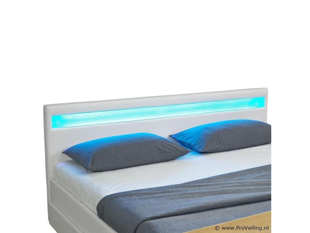 Met het gestoffeerde bed Lyon (140x200 cm, wit) haal je de allrounder in huis! Het opbergbed is een wonder van ruimte en maakt indruk met moderne apparatuur. Als eenpersoons-, jeugd- of logeerbed past hij ook in kleine slaapkamers. Op de stabiele lattenbodem kunt u uw matras van 140x200 cm optimaal plaatsen en gezond en comfortabel slapen. Het hoge hoofdbord heeft ook veel voordelen. Enerzijds dient het als een comfortabele rugleuning. Aan de andere kant verlicht hij dankzij de ledstrip de ruimte met prachtig indirect licht. Technische specificaties: Producttype: bedframe Kleur wit Stijl: modern Materiaal frame: MDF hout, metaal Materiaal bekleding: kunstleer (84% PVC, 16% polyester) Bedkasten: 4 Verlichting: LED-strip met afstandsbediening Lichtkleur: 16 verschillende kleuren Vermogen lichtbron: 11,3 W Lichtstroom: 263 lm Kleurtemperatuur: 3000-8000K Afmetingen (ongeveer): Afmetingen: 148 x 214 cm Ligoppervlak: 140 × 200 cm Hoogte hoofdbord: 85 cm Dikte hoofdeinde: 9,5 cm Hoogte bedframe: 36,5 cm Opmerkingen over de lichtbron: Het product bevat LED-verlichting. De meegeleverde LED-verlichting is alleen bedoeld voor scène-/accentverlichting en is niet geschikt voor andere toepassingen. De meegeleverde lampen zijn niet uitwisselbaar, maar uitneembaar. De meegeleverde LED-verlichting is via een IR-afstandsbediening in te stellen en te dimmen. De meegeleverde LED-verlichting moet worden afgevoerd in overeenstemming met de richtlijn afgedankte elektrische en elektronische apparatuur Leveringsomvang: 1 x gestoffeerd bed 1 x lattenbodem 1 x afstandsbediening 1 x Instructie Let op: Het matras is niet bij de levering inbegrepen. U ontvangt het product goed verpakt als bouwpakket voor zelfmontage per pakketdienst. Dit artikel bestaat uit 3 dozen, het kan logistiek voorkomen dat het in meerdere dagen geleverd wordt. Onderdelen kunnen zich in het hoofdbord bevinden.