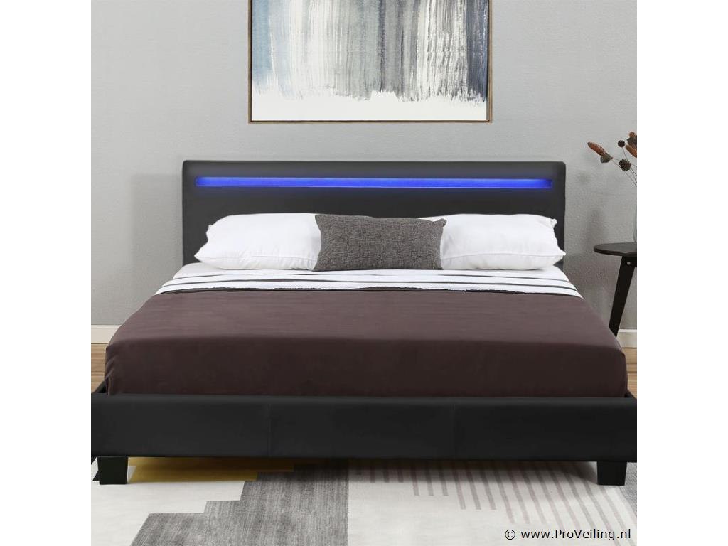 Het knusse gestoffeerde bed Verona (zwart) met LED-verlichting en lattenbodem is de ideale plek om te ontspannen voor een goede en gezonde nachtrust. Met een ligvlak van 120 × 200 cm biedt het comfortabele eenpersoonsbed zowel tieners als alleenstaande volwassenen een extreem ruim aanbod. De eenvoudige hoes geeft het kunstleren bed een moderne uitstraling die naadloos in menig logeerkamer of slaapkamer past. Het charmante meubelstuk is ideaal om uit te rusten en nieuwe energie op te doen. Technische specificaties: Materiaal frame: MDF hout, metaal Materiaal bekleding: kunstleer (84% PVC, 16% polyester) Producttype: bedframe De kleur zwart Stijl: modern Verlichting: LED-strip met afstandsbediening Lichtkleur: 16 verschillende kleuren Vermogen: 12,1 W Lichtstroom: 198 lm Kleurtemperatuur: 2000 - 10000K Afmetingen (ongeveer): Afmetingen: 125 x 213 cm Ligoppervlak: 120 × 200 cm Hoogte hoofdeinde: 78 cm Dikte hoofdbord: 7 cm Framedikte voetdeel: 6 cm Framedikte zijkanten: 2,5 cm Lighoogte: 23,5 cm Voeten: 8 cm Opmerkingen over de lichtbron: Het product bevat LED-verlichting. De meegeleverde LED-verlichting is alleen bedoeld voor scène-/accentverlichting en is niet geschikt voor andere toepassingen. De meegeleverde lampen zijn niet uitwisselbaar, maar uitneembaar. De meegeleverde LED-verlichting is via een IR-afstandsbediening in te stellen en te dimmen. De meegeleverde LED-verlichting moet worden afgevoerd in overeenstemming met de richtlijn afgedankte elektrische en elektronische apparatuur. Leveringsomvang: 1 x gestoffeerd bed 1 x lattenbodem 1 x trafo & afstandsbediening 1 x voedingsadapter 1 x montagehandleiding