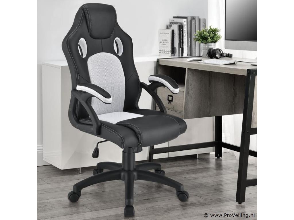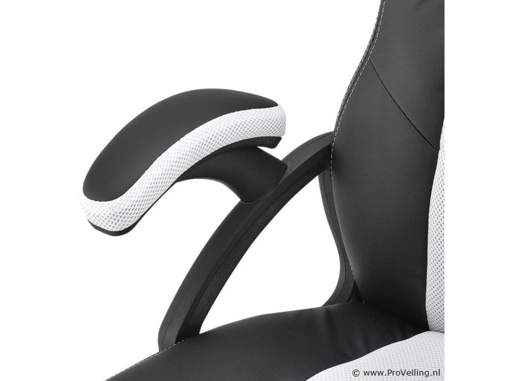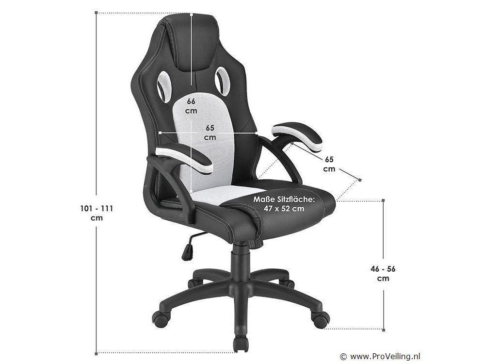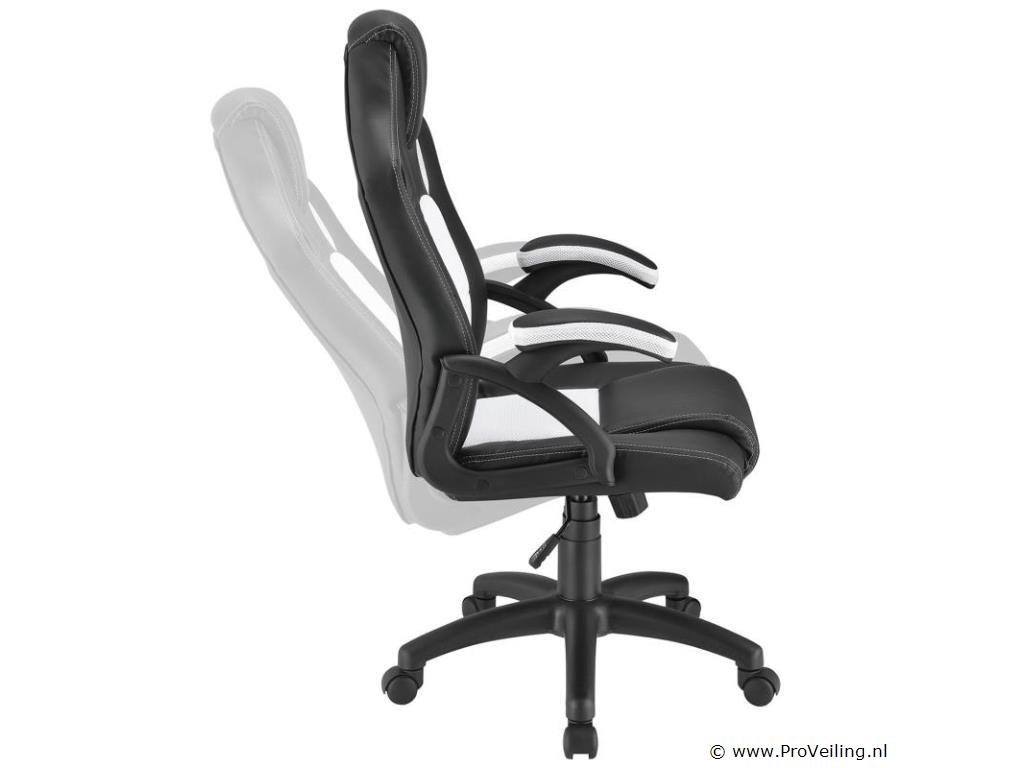 De gezellige Racing bureaustoel Montreal (wit) overtuigt met een hoog zitcomfort. Met zijn ergonomisch gevormde zitting, de kantelbare rugleuning en zitting en de gecapitonneerde armleuningen laat de moderne bureaustoel in trendy racerdesign urenlang comfortabel zitten. De draaistoel is daarom ideaal om thuis op kantoor te werken, huiswerk te maken en te leren, en voor gepassioneerde gamers om op de computer te spelen. Technische specificaties: Materiaal: kunststof, metaal, imitatieleer, mesh inzetstuk Kunstleer kleur: zwart Netkleur: wit Maximale belasting: 120 kg Afmetingen (ongeveer): Totale hoogte: 101 - 111 cm Hoogte rugleuning: 65 × 66 cm Zitting: 47 x 52 cm Zithoogte: 46 - 56 cm Zitbreedte: 47 cm Zitdiepte: 52 cm Leveringsomvang: 1 × bureaustoel 1 × montage-instructies