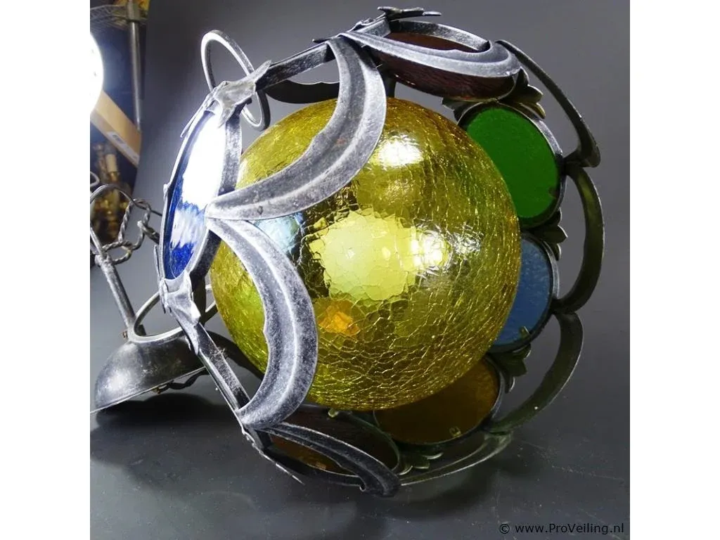 Vintage tinnen glas en lood bollamp