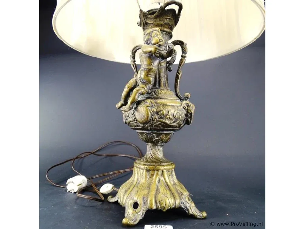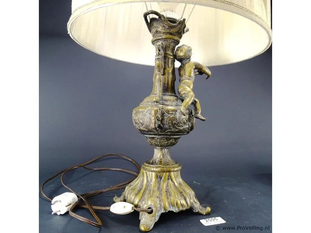 Tafellamp op antieke bonzen voet met puto