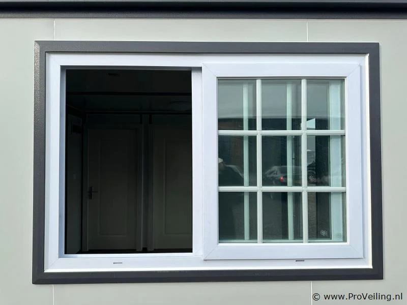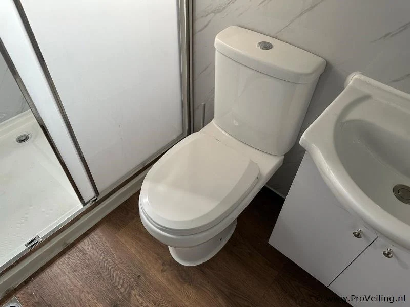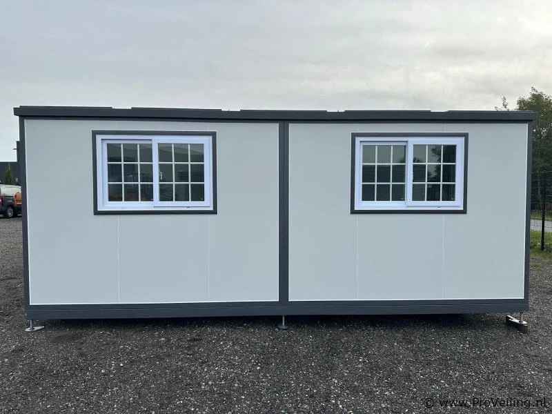 Type: Compleet Deluxe (19ft*20ft) Aantal ramen: 9 Keukenblok: true Toilet: true Eigen gewicht: 3550 kg Totale afmeting Lengte: 5860 mm Totale afmeting Breedte: 6220 mm Totale afmeting Hoogte: 2550 mm Additionele informatie: Voorzien van geïsoleerde wanden en dak; hoek keuken met boven kastjes; badkamer met toilet en regendouche; wastafel met spiegelkast en toiletgarnituur; vinyl vloer; ventilatiesysteem (230 Volt aansluiting); kunststof kozijnen met dubbele beglazing; afwateringsgoot; bordes; water, stroom en afvoer kan makkelijk aangesloten worden is voorbereid; afsluitbaar met sleutel en knopcilinder; afmetingen ingeklapt 5860x2110x2550 mm (transport afmetingen); ongebruikt