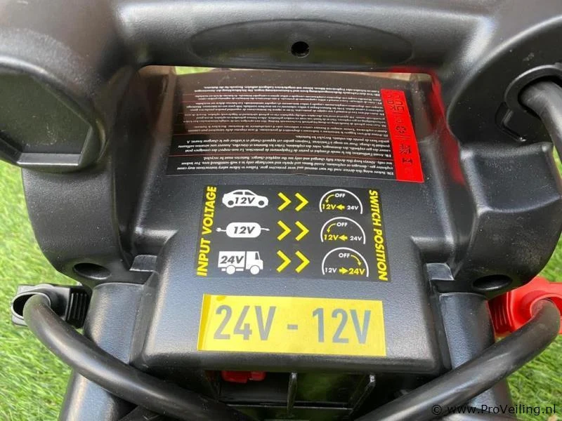 " 12/24 V 2x 22Ah - 5000/2500 Peak Amps LED Voltmeter Fully Automatic Charger LE5A12 25mm 2 Cables Industrial Pure Brass Clamps Safety Features: 12/24V Connector Built-in Safety Fuse Adviesprijs fabrikant: € 1950,-"
