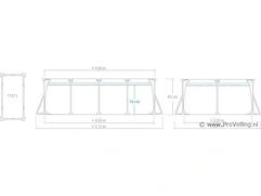 Dit stevige opzetzwembad beschikt over een buizenframe van gegalvaniseerd staal en een stevig drielaags PVC zeil. Het frame staat naar buiten uit, waardoor het zorgt voor nog meer stevigheid. Bovendien roest het staal niet, waardoor u er lang plezier aan beleeft. Het zwembad beschikt over twee openingen waarop een filterpomp aangesloten kan worden. Het opzetten neemt ongeveer een half uur in beslag, waardoor u snel van uw zwembad kunt genieten. Merk: Intex Model: Rectanggular Frame Producttype: 4,5 m Kleur: Blauw Lengte: 450 cm Breedte: 220 cm Hoogte: 84 cm Inhoud: 7127 liter
