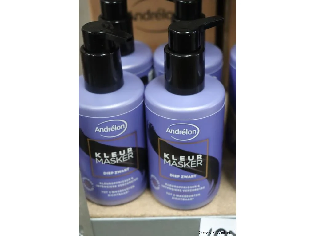 Kleurmasker: merk Andrélon; diverse kleuren o.a. diep zwart & zomer blond; aantal ca. 18 stuks á 200ml.