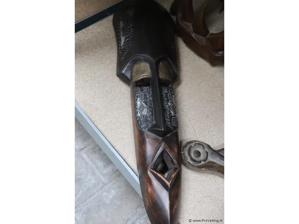 Handgemaakte houten maskers uit Ghana; aantal 3 stuks.