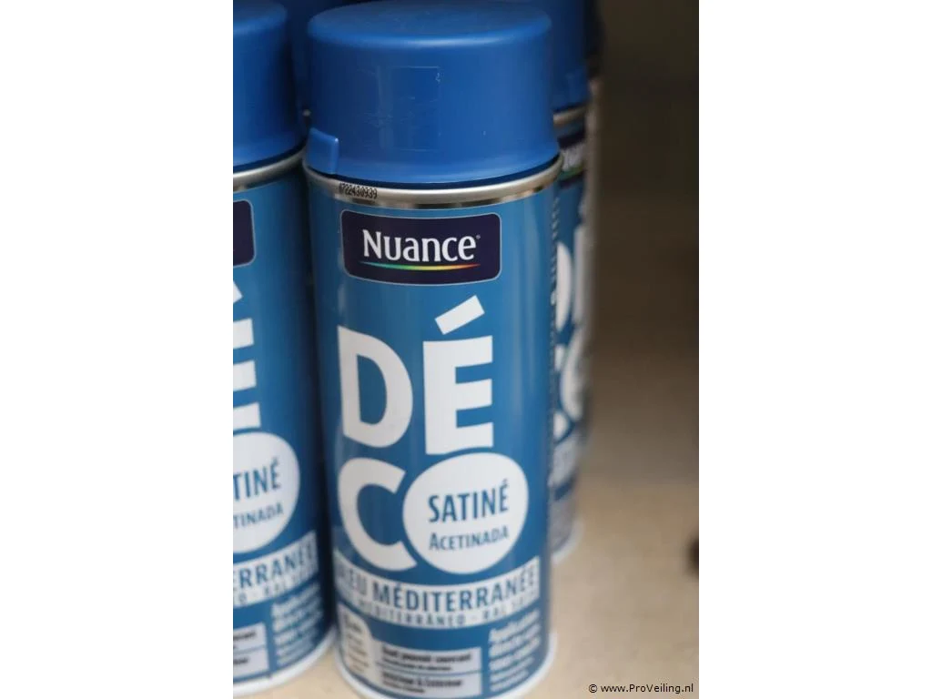 Partij spuitbussen: merk Nuance; kleur RAL 5019 Blauw; zijdeglans; voor binnen en buiten; aantal ca. 10 bussen á 400ml.