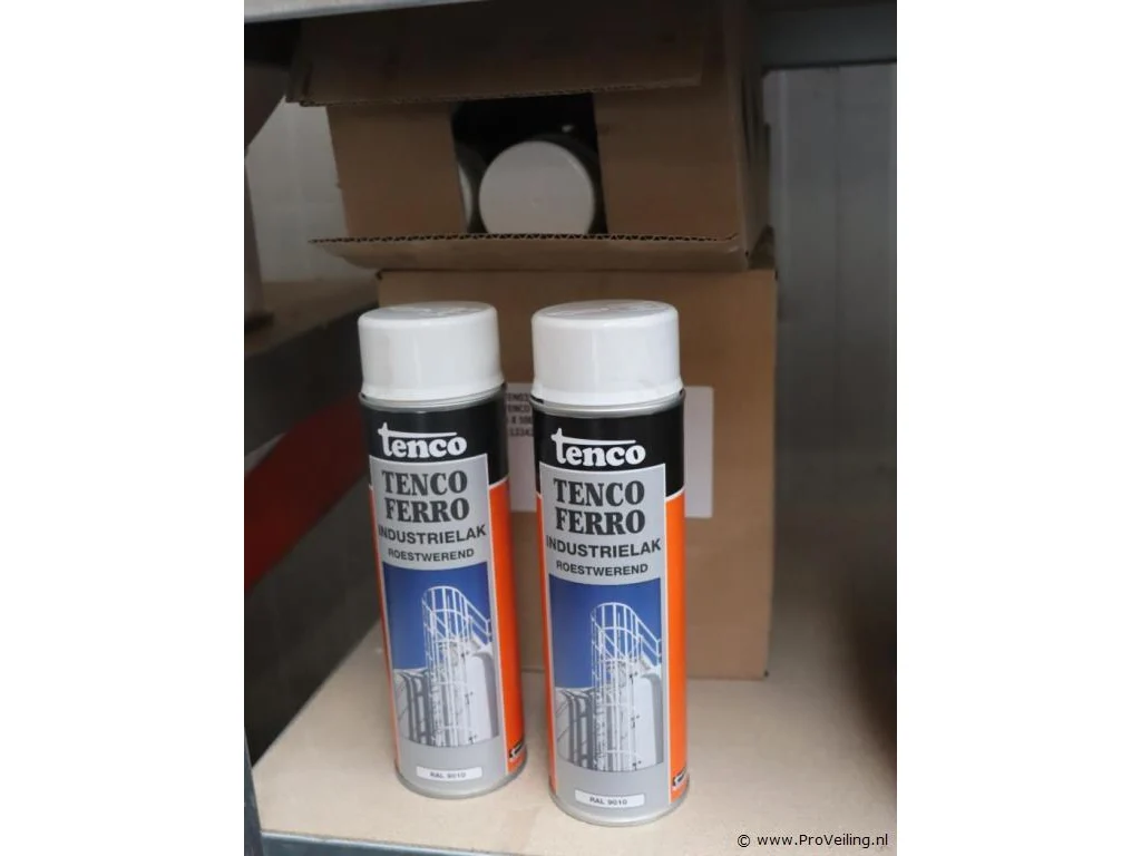 Partij industrielak roestwerend: merk Tenco; geschikt voor alle ondergronden; RAL 9010; aantal 10 bussen á 500ml.