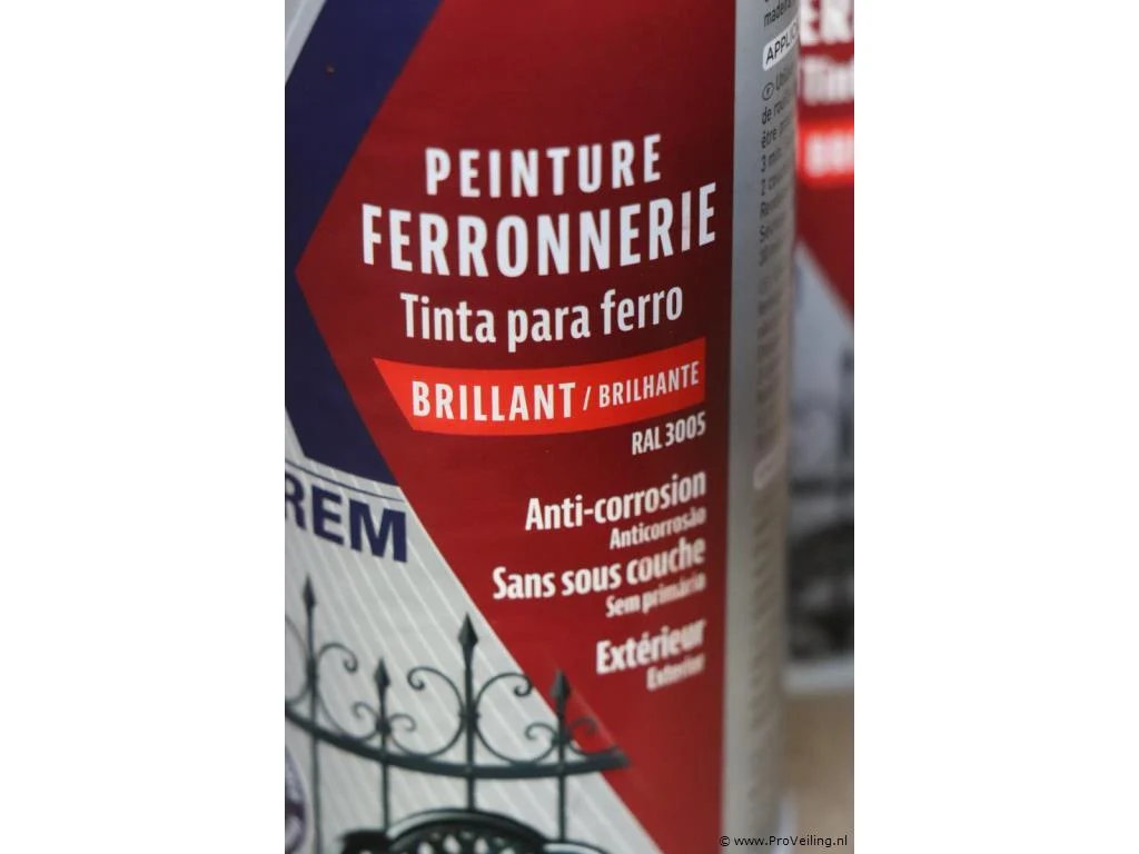 Partij spuitbussen voor hekwerken: merk Nuance; kleur Ral 3005 (Rood) - zit verkeerde dop op; aantal ca. 11 bussen á 400ml.