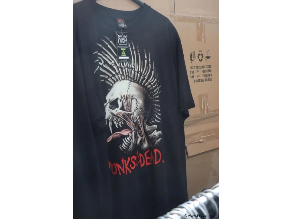 Partij T-shirts met opdruk; zeefdruk/ Glow in the dark; diverse maten S t/m XXL; aantal ca. 50 stuks.