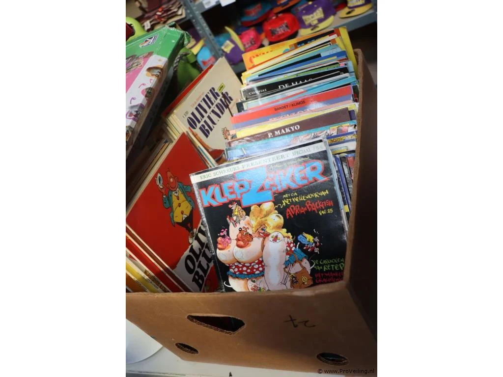 Partij diversen bestaande uit o.a. melkbus, ventilator, road signs, kinderstoeltje & stripboeken (100 stuks); zie afbeeldingen.