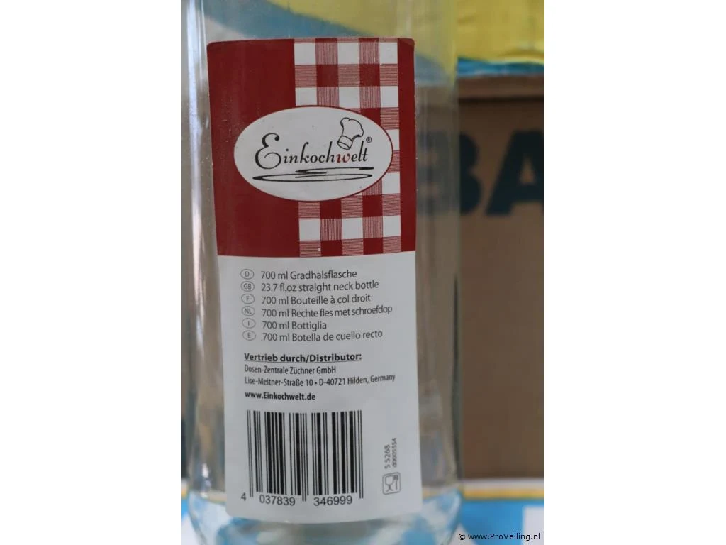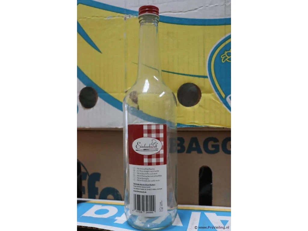Partij rechte glazen flessen met schroefdop: merk Einkochwelt; inhoud 700ml; aantal ca. 190 stuks.