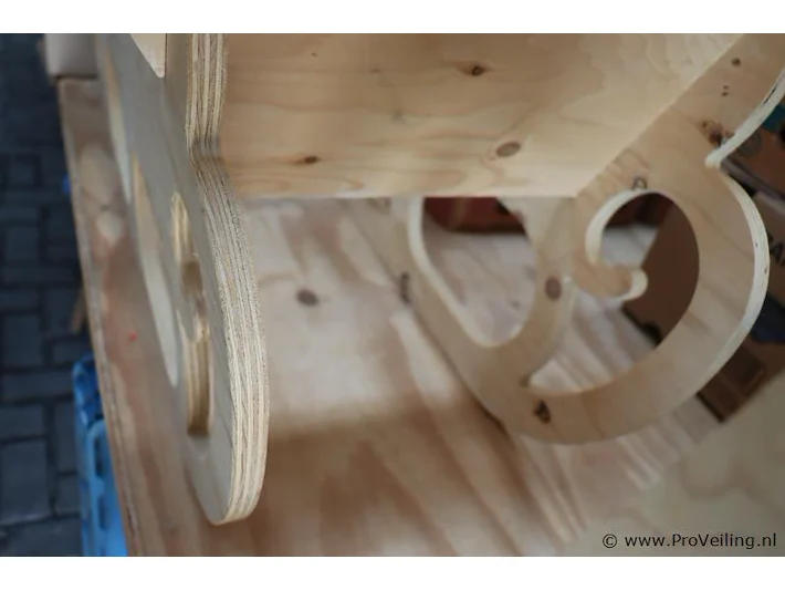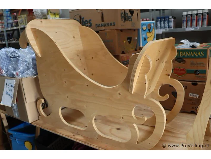 Houten hert met slee, showroommodel; afmetingen ca. 190x40x150cm.
