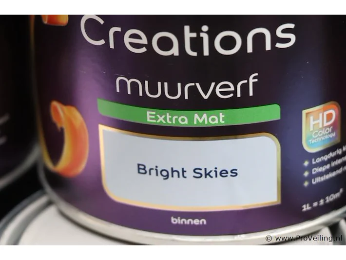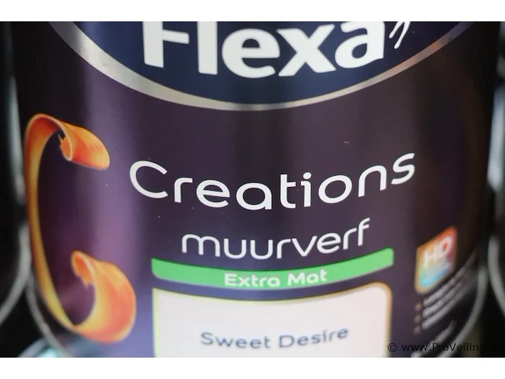 Partij muurverf: merk Flexa Creations; diverse kleuren; voor binnen; aantal ca. 34 blikken á 1ltr.