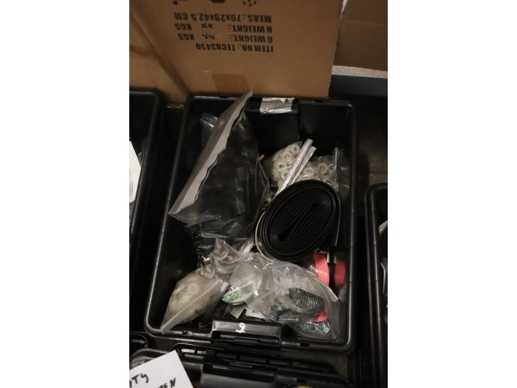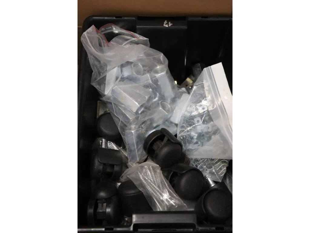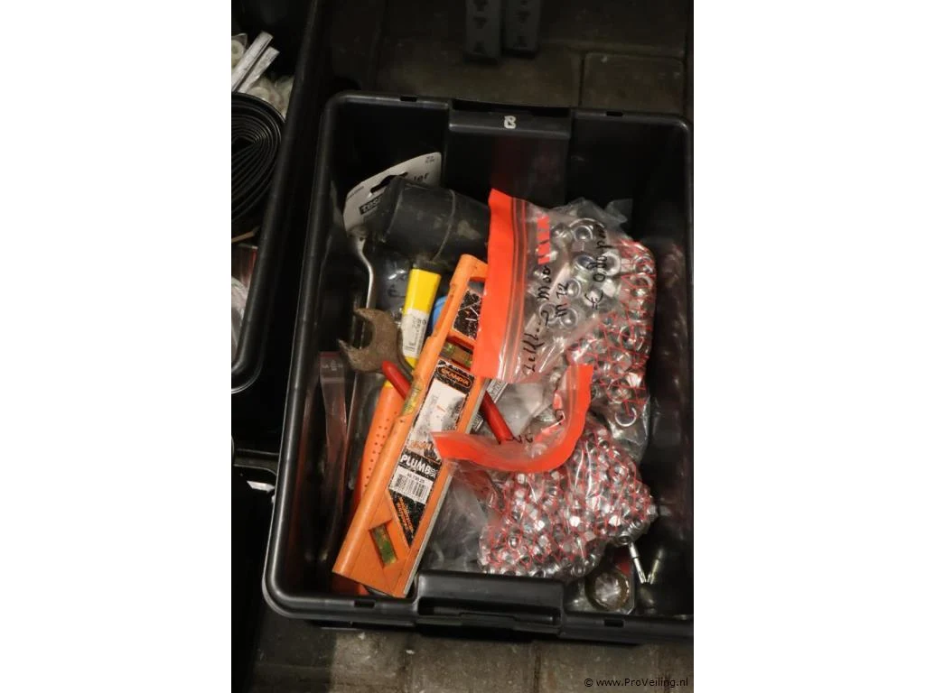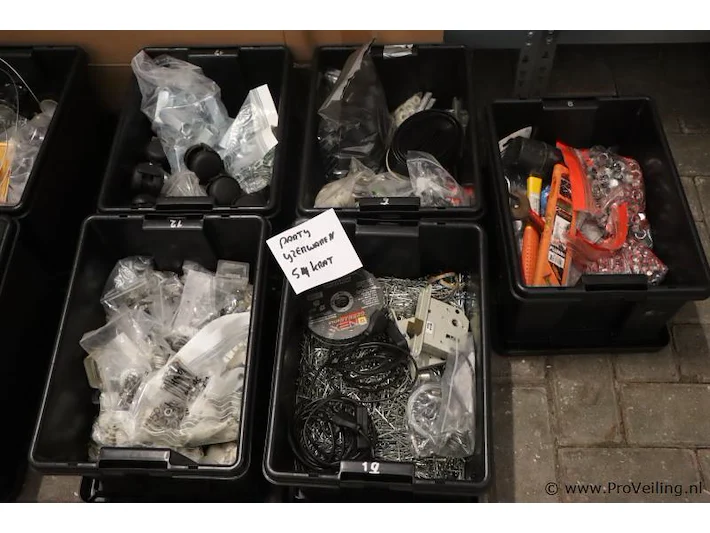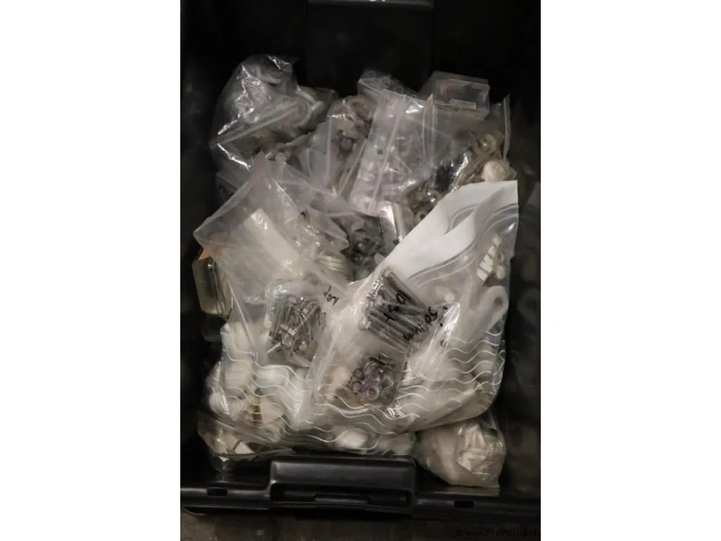 Partij ijzerwaren o.a. bouten, moeren, schroeven, ringen - 5 kratten