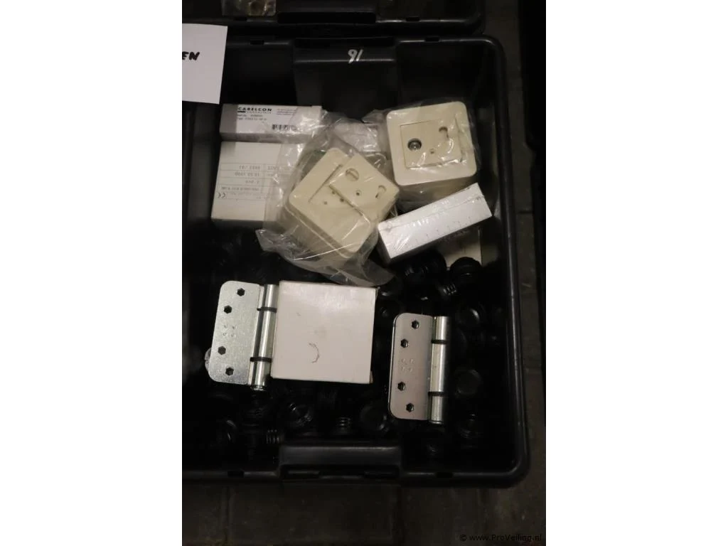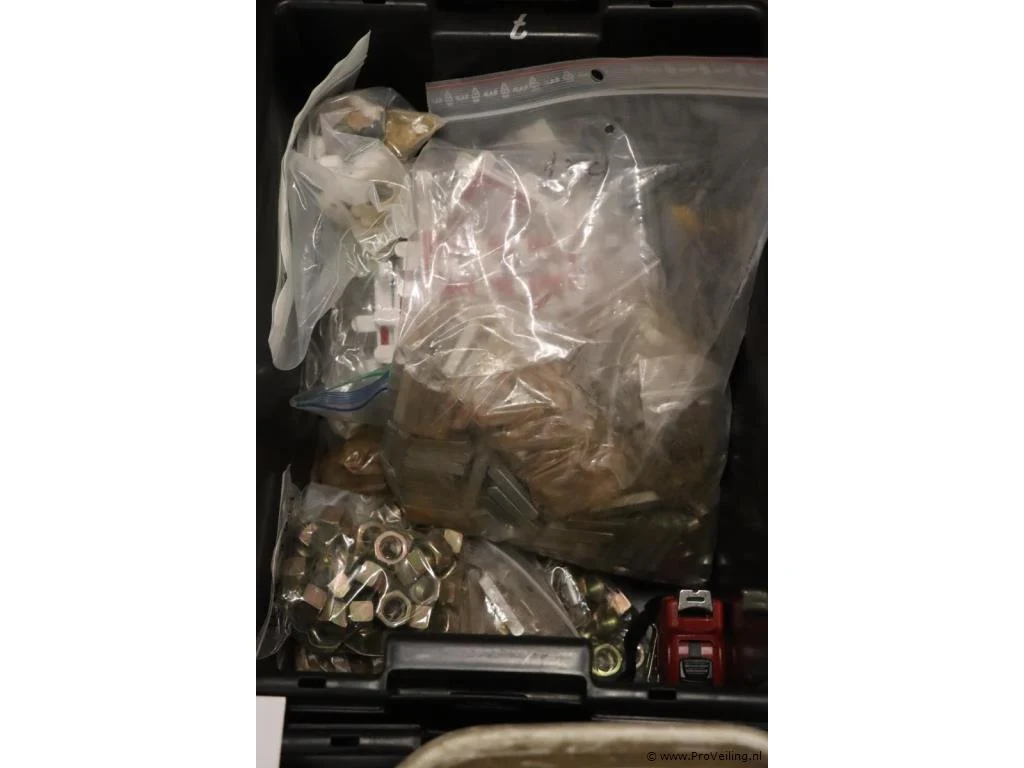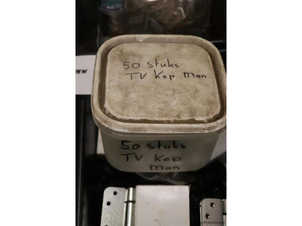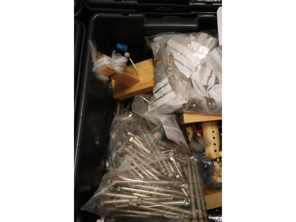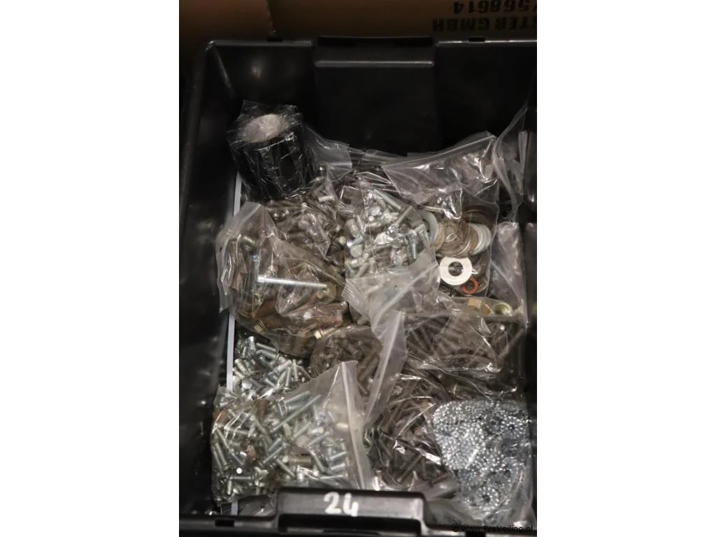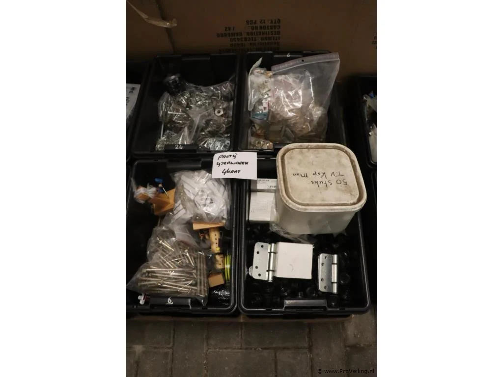 Partij ijzerwaren o.a. bouten, moeren, schroeven, ringen - 4 kratten