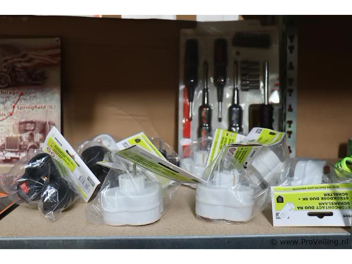 Partij diversen bestaande uit o.a. decoratie, gereedschap, stekkers & fietspompen