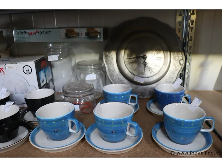 Partij decoratiemateriaal o.a. kandelaars, glazen vazen, kop & schotels; zie afbeeldingen.