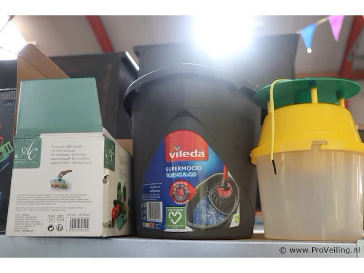 Partij diversen in stelling o.a. servies, pannen & huishoudelijke artikelen; zie afbeeldingen.