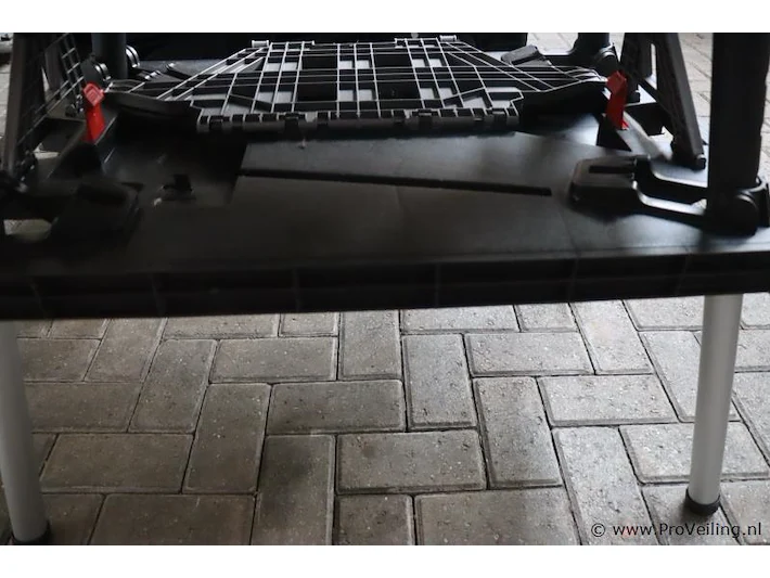 Werkbank: merk Keter; inklapbaar; afmetingen ca. 850x550mm; lichtgewicht.