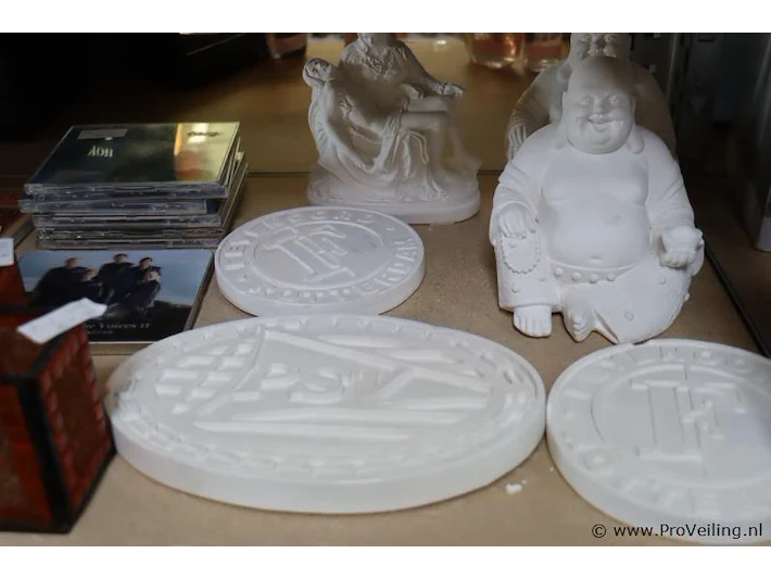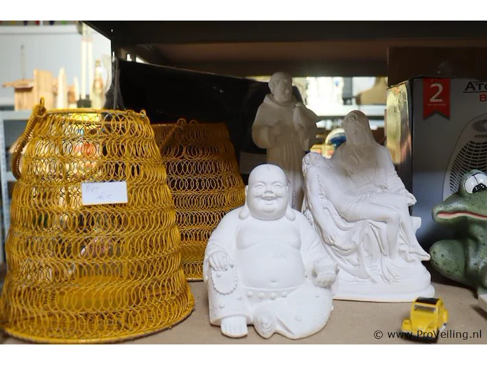 Partij diversen bestaande uit o.a. woondecoratie, werkschoenen, vaatdoekjes & muziekcd's; nieuw en gebruikt; zie afbeeldingen.