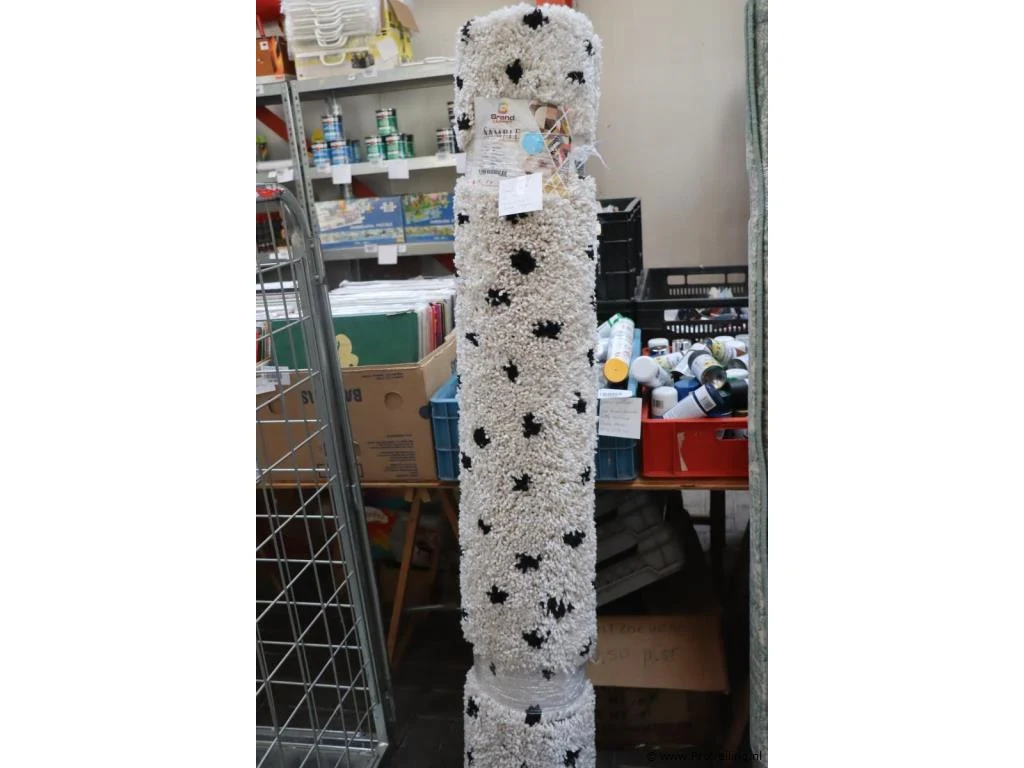 Vloerkleed met zwarte stippen: merk Grand Carpet; kleur crème/zwarte stippen; afmetingen ca. 160x230cm.