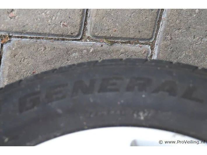 Autobanden met aluminium Audi velgen: merk General; type Altimax One S; maat 205/55 R 16 V; aantal 4 stuks. Excl. Transportkar.