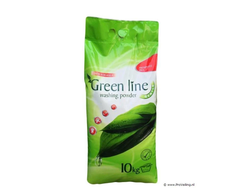 GREENLINE WASPOEDER 960 KG PALLET VOORDEEL 96 x 10 kilo [per palet - Bekend uit de hotelwereld en wasserettes - geschikt voor iedere wasmachine of handwas - Losse korrels - Ruim 100 normale wasbeurten - Zak van maar liefst 10Kg - Biologisch afbreekbaar - Merk: Greenline - Europese A Kwaliteit - color Fresh zachte was Met deze luxe Greenline waspoeders stellen wij u professioneel waspoeder ter beschikking tegen werkelijk een dumpprijs. Greenline is een gerenommeerd waspoeder merk welke actief is op de professionele waspoeder markt en veelgebruikt is in hotels en stomerijen. voor het heerlijke frisse was gevoel. Daarnaast is dit waspoeder geheel fosfaat vrij en biologisch afbreekbaar en geschikt voor iedere wasmachine of handwas. Daarnaast is het geschikt en veilig voor zowel witte als bonte was. Met een zak van maar liefst 10Kg, bent u voorzien van ruim 100 normale wasbeurten! De poeders zijn lang houdbaar en een kleine voorraad slaan is dan ook geen probleem.